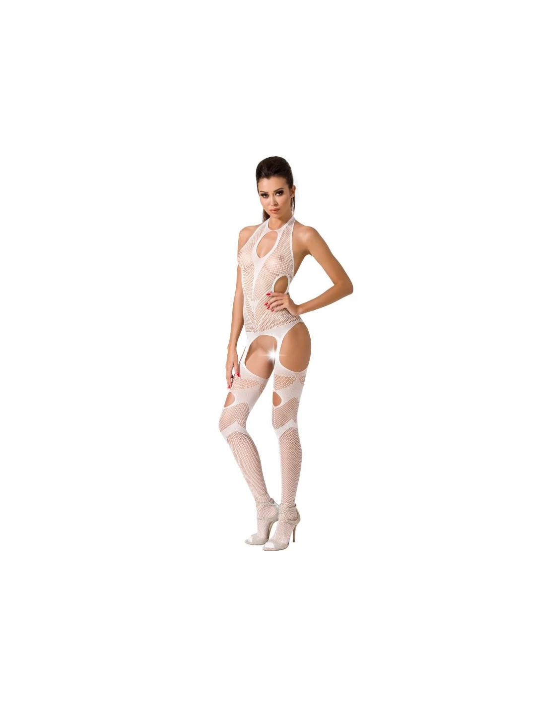 Fabuloso cuerpo en red con un diseño espectacularmente sexy con abertura en la entrepierna, fabricado por la prestigiosa marca de lencería sexy Passion.