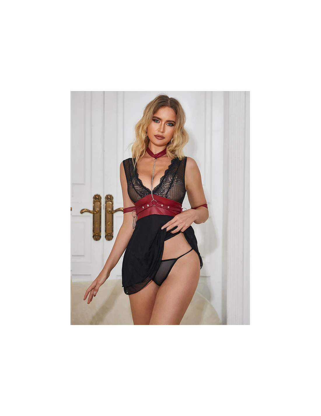 SUBBLIME - 954437 VESTIDO BONDAGE DE ENCAJE NEGRO L/XL