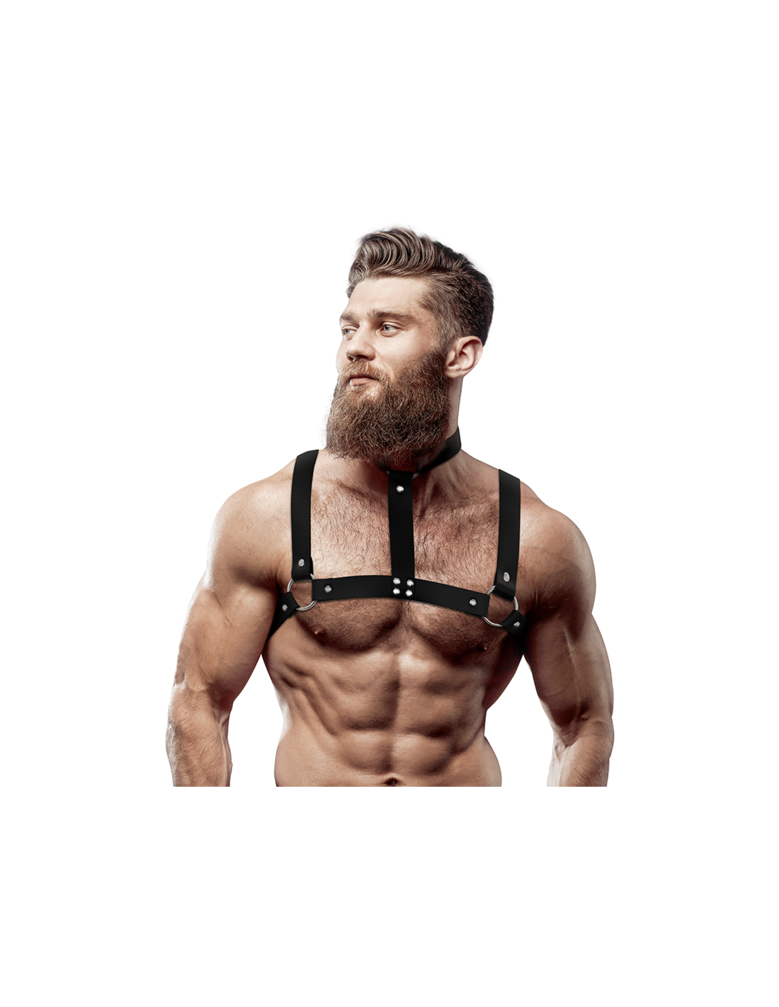 FETISH SUBMISSIVE ATTITUDE - ARNÉS AJUSTABLE ECOPIEL PECHO CON COLLAR HOMBRE