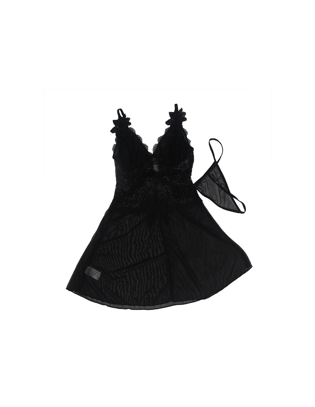 SUBBLIME - BABYDOLL TELA DE TUL DETALLE ENCAJE Y FLOR NEGRO S/M