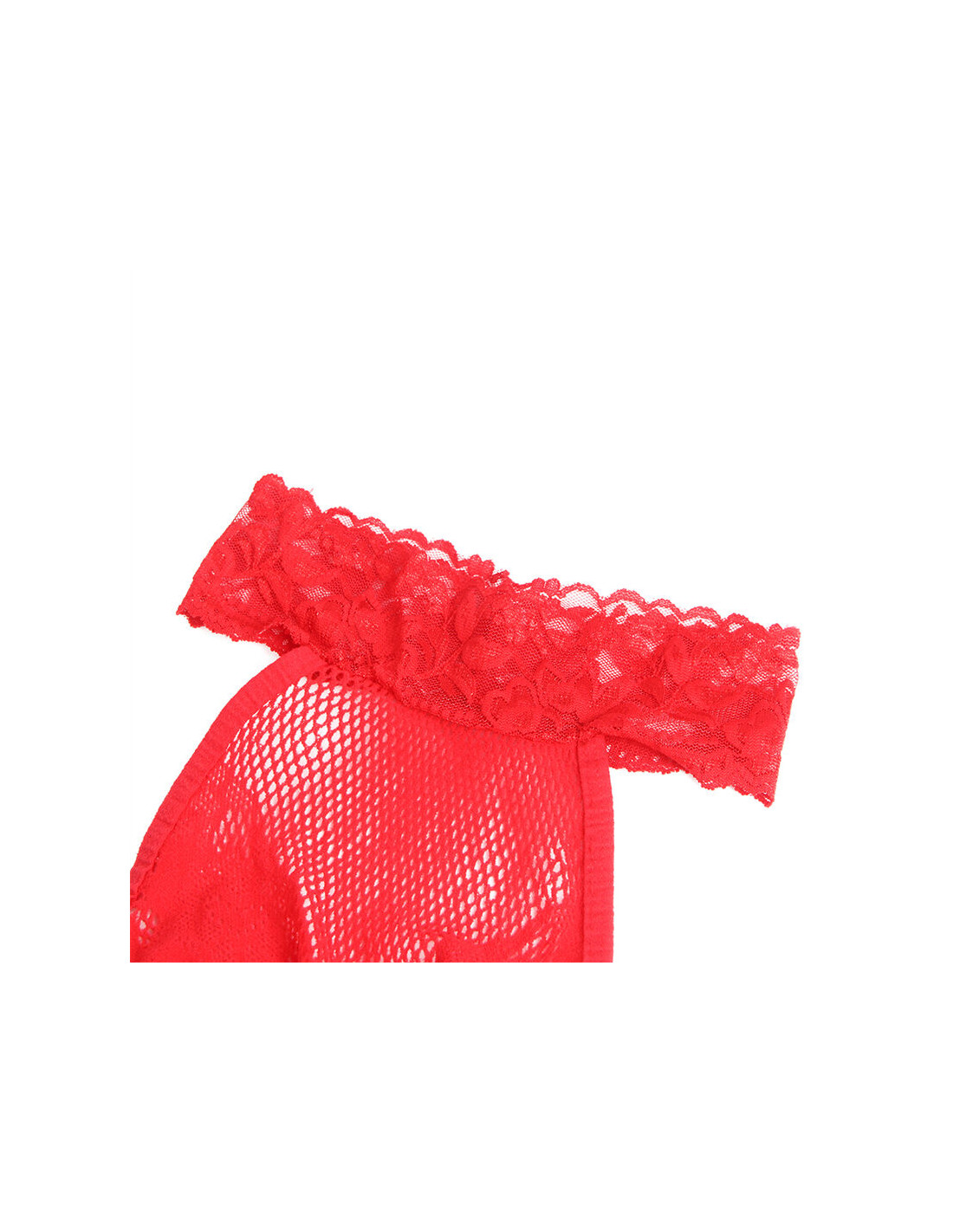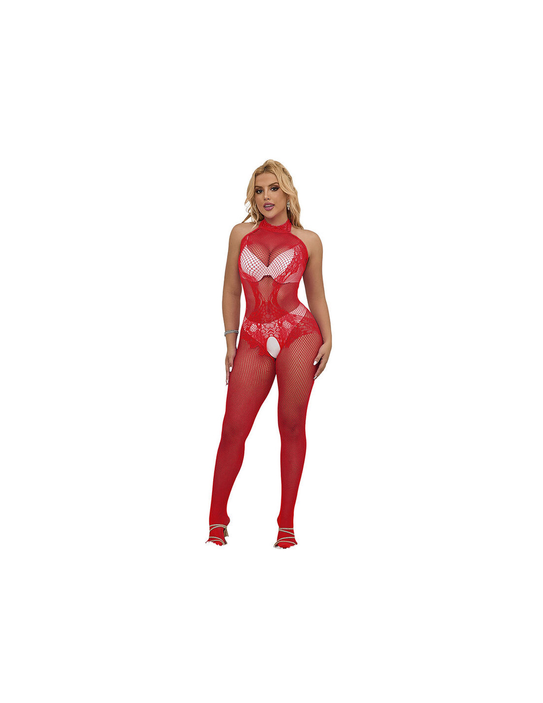 SUBBLIME - 952372 BODYSTOCKING CROTCHLESS DE REJILLA Y ENCAJE CON CUELLO ALTO ROJO TALLA ÚNICA
