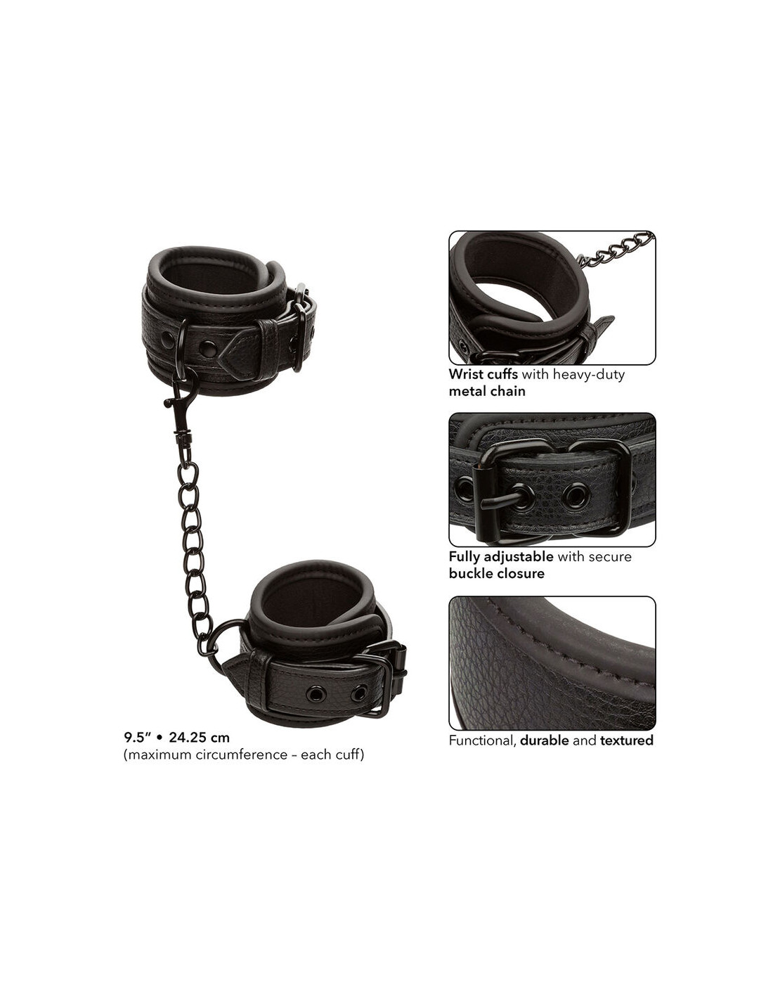 CALEXOTICS - NOCTURNAL LEATHER WRIST CUFFS ADJUSTABLE, D-241423