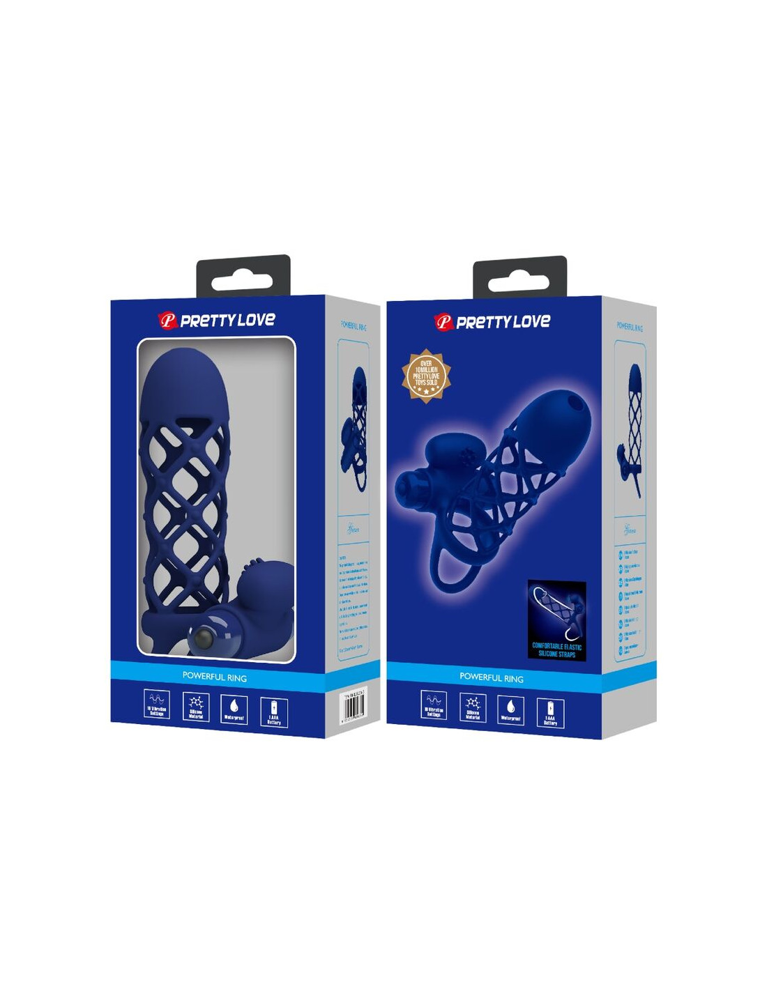 PRETTY LOVE GIANN ANILLO VIBRADOR CON FUNDA DE SILICONA AZUL