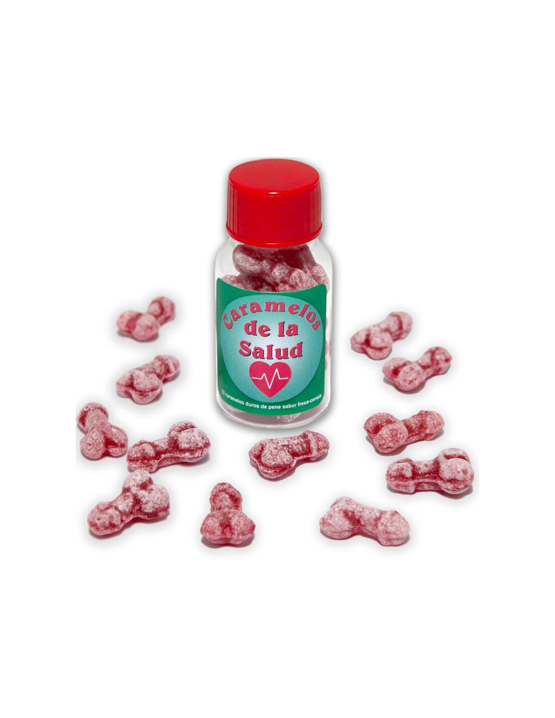 DIABLO PICANTE - 12 CARAMELOS DE LA SALUD FORMA PENE FRESA/CEREZA