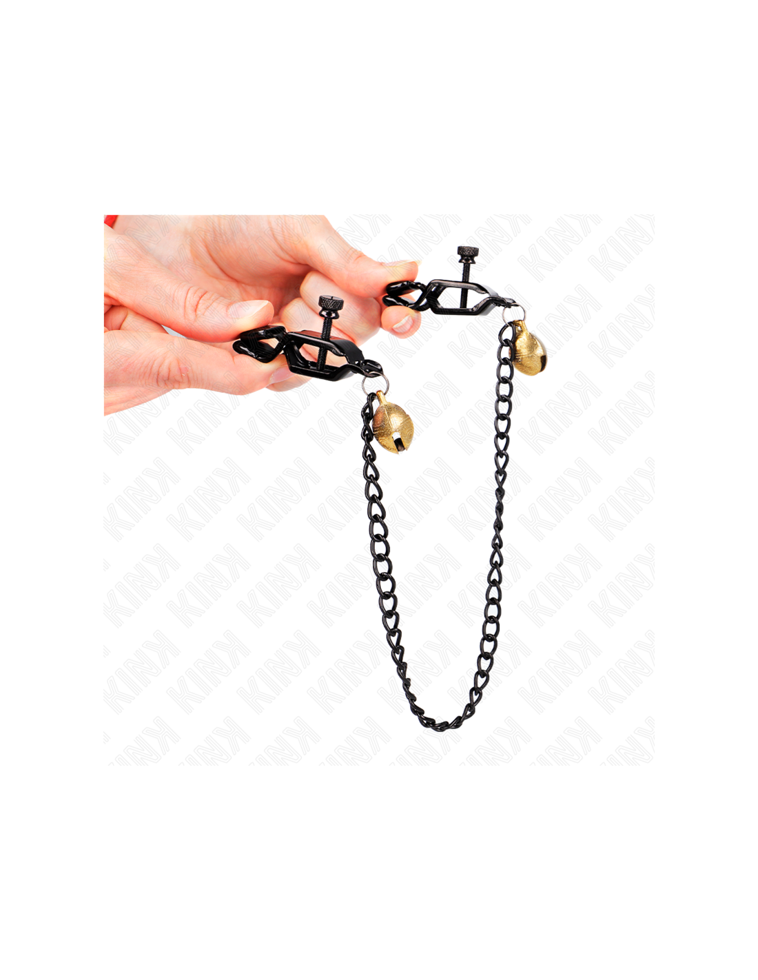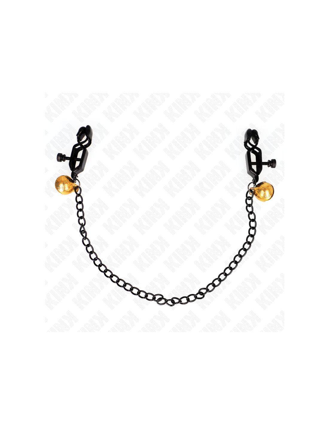 KINK - PINZAS PARA PEZONES PLANAS NEGRO CON CASCABEL Y CADENA PLATEADO 30 CM