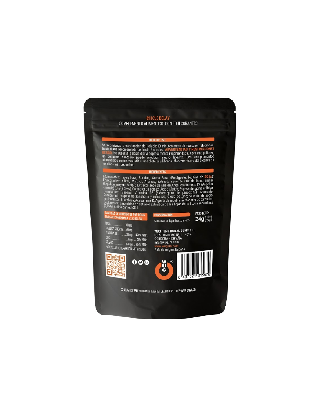 WUG DELAY – Chicle funcional con Zinc, Selenio y Vitamina B6 para mayor control y resistencia en los momentos íntimos