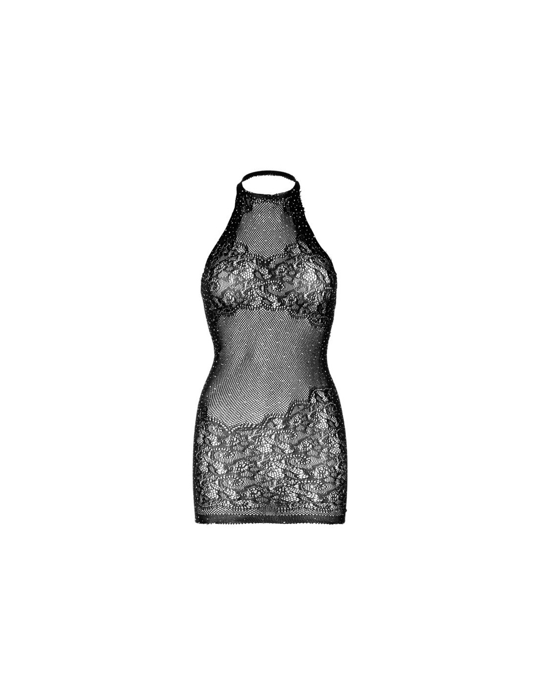 LEG AVENUE - RHINESTONE HALTER MINI DRESS ONE SIZE - BLACK, D-232869