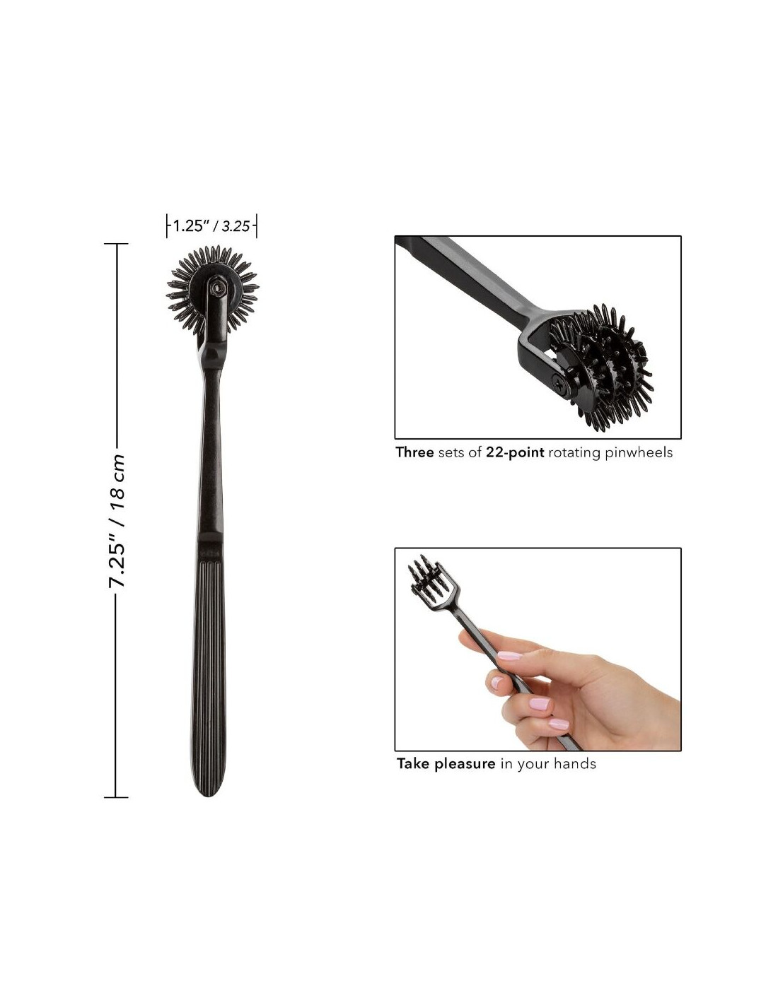 Disfruta de un placer emocionante con la hermosa Rueda de Placer Scandal® Trio, una excitante rueda de placer con tres ruedas de 22 puntas. Fabricada con una aleación de zinc resistente, sin níquel y que no se deslustra, para una experiencia de lujo suprema y una sensación increíble en la mano. Con cada rodada sobre tu piel, esta apasionada rueda te emocionará, excitará y elevará cada momento íntimo.