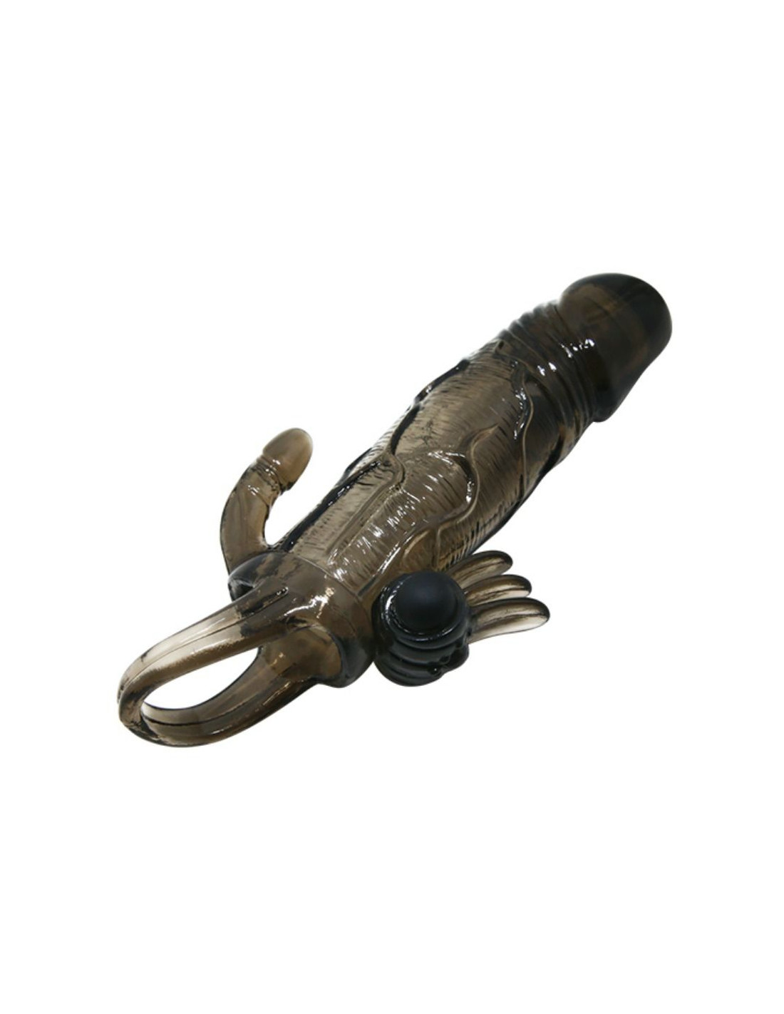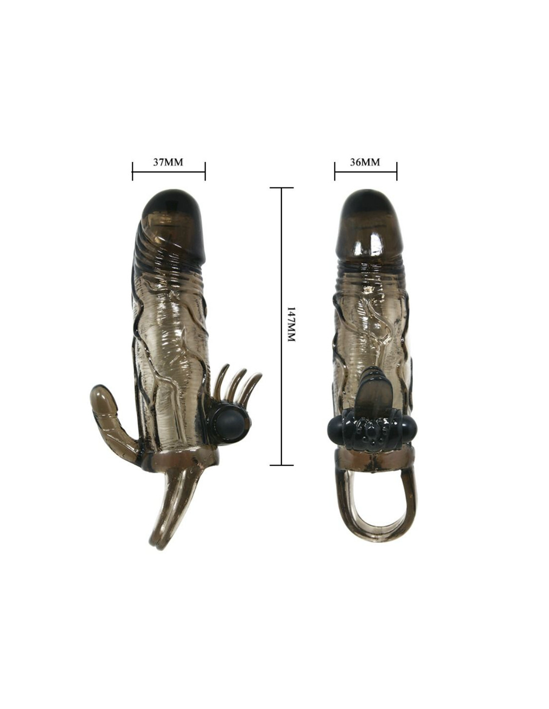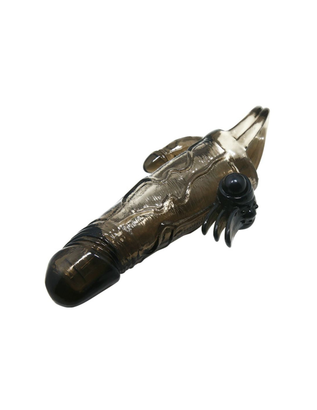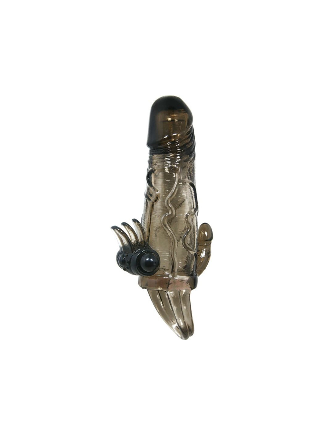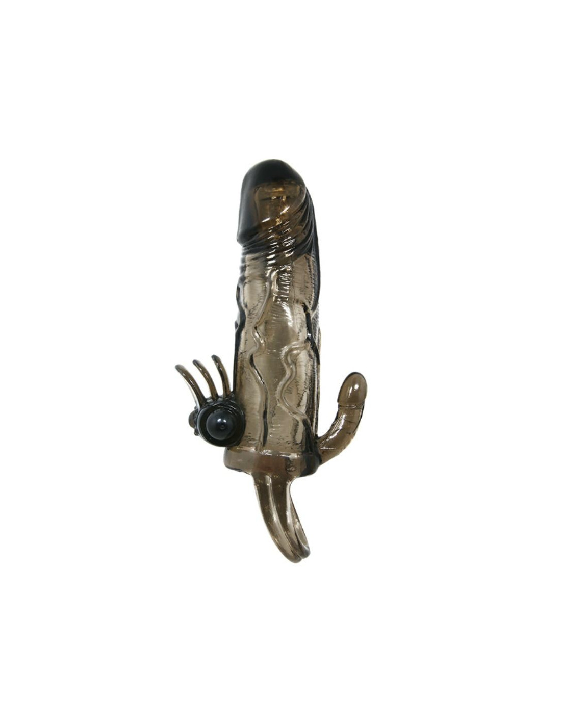 Aumenta la duración y el placer en tus relaciones con esta fantástica funda realística para el pene. Con todo lujo de detalles, incorpora además unos traviesos pliegues con una potente bala que estimulará el clítoris de tu pareja y otra incorporada en la punta de la funda para que ambos disfruteis y al lado contrario de los pliegues, una prolongación con forma de minipene para estimulación anal.