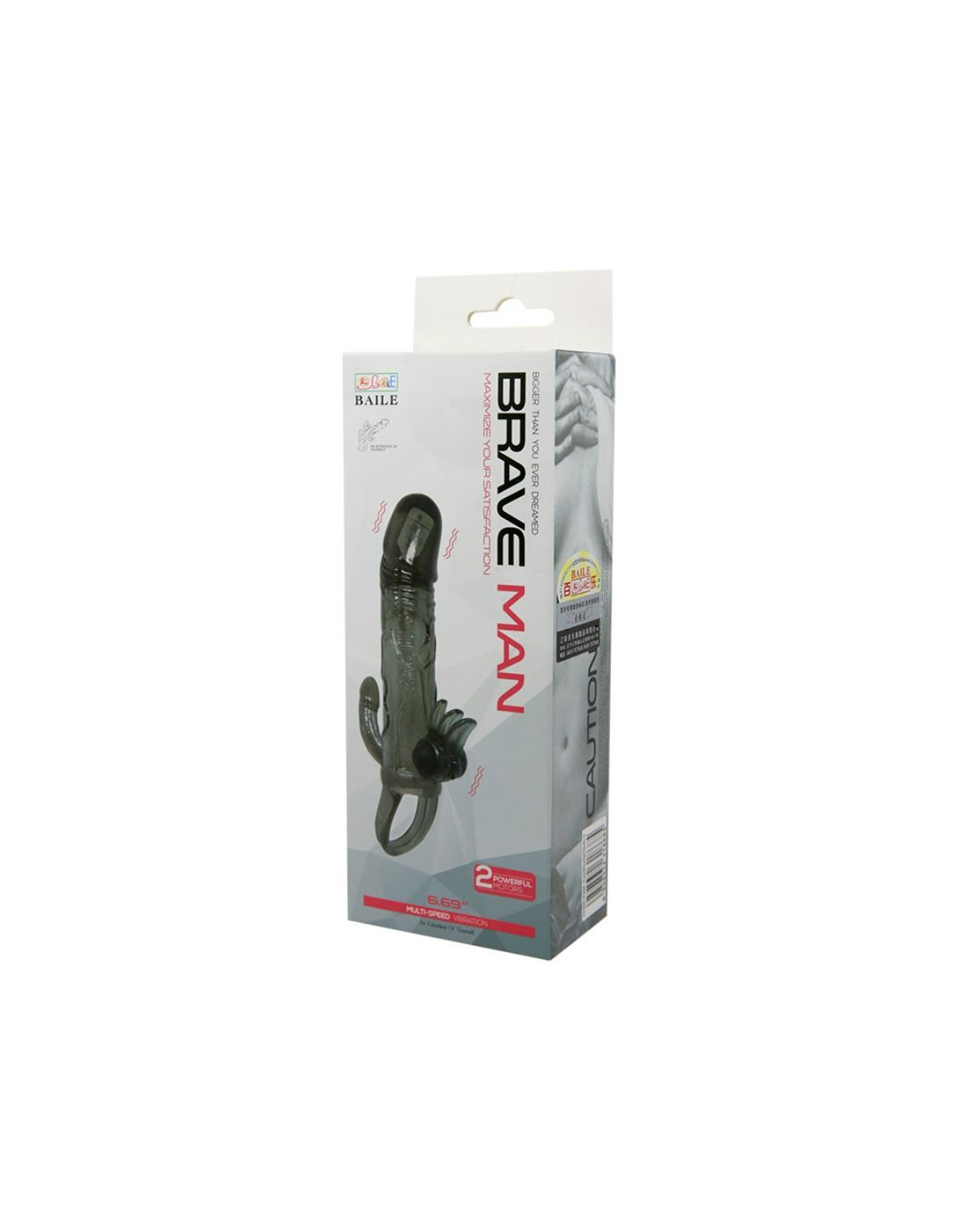 BAILE - BRAVE MAN FUNDA PENE ANAL Y CLITORIS VIBRADOR 16.5 CM NEGRO