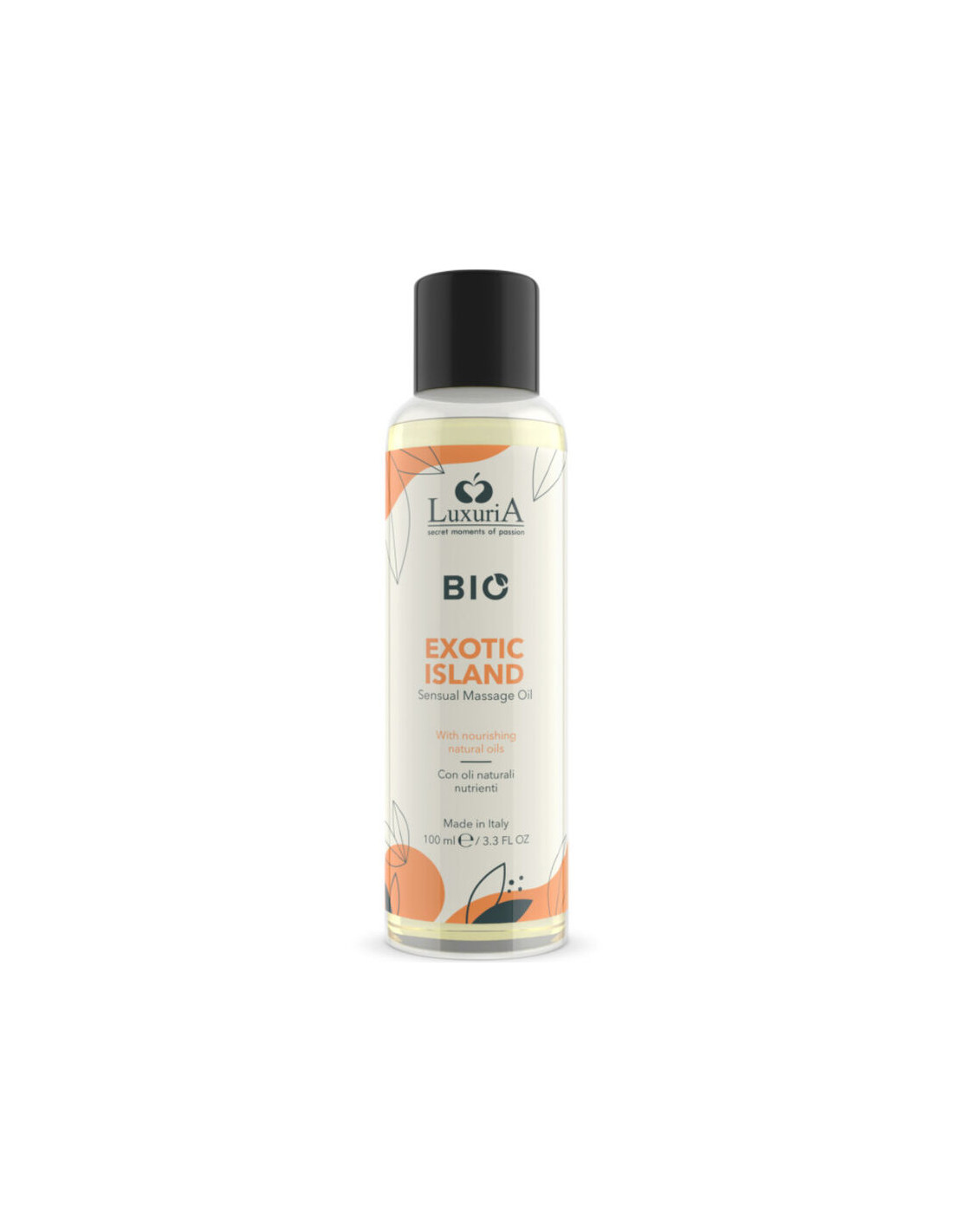 Luxuria BIO Oil Exotic Island es un aceite de masaje de la nueva línea Bio de Luxuria. Su fórmula nutritiva a base de aceites vegetales totalmente naturales y esencias estimulantes refinadas proporciona una hidratación intensa, dejando la piel suave y perfumada. El aceite estimulará tus sentidos con sus notas cálidas, afrutadas y dulces que te acompañarán durante todo el masaje.