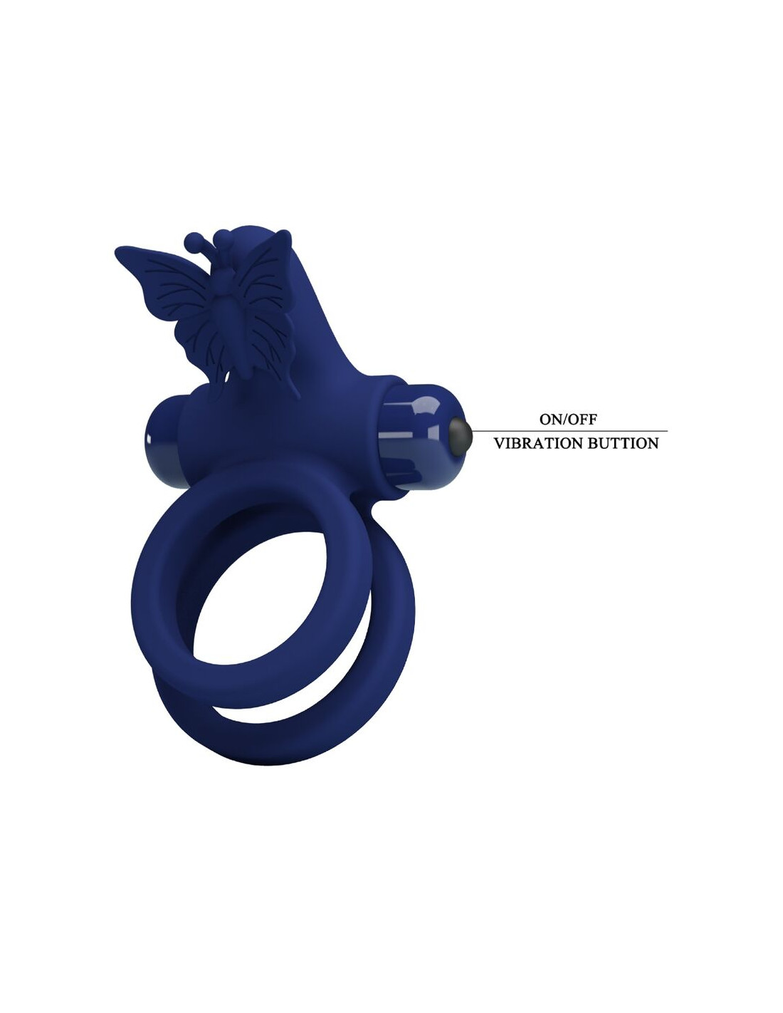 PRETTY LOVE - JAMELE DOBLE ANILLO CON VIBRACIÓN & ESTIMULADOR MARIPOSA AZUL