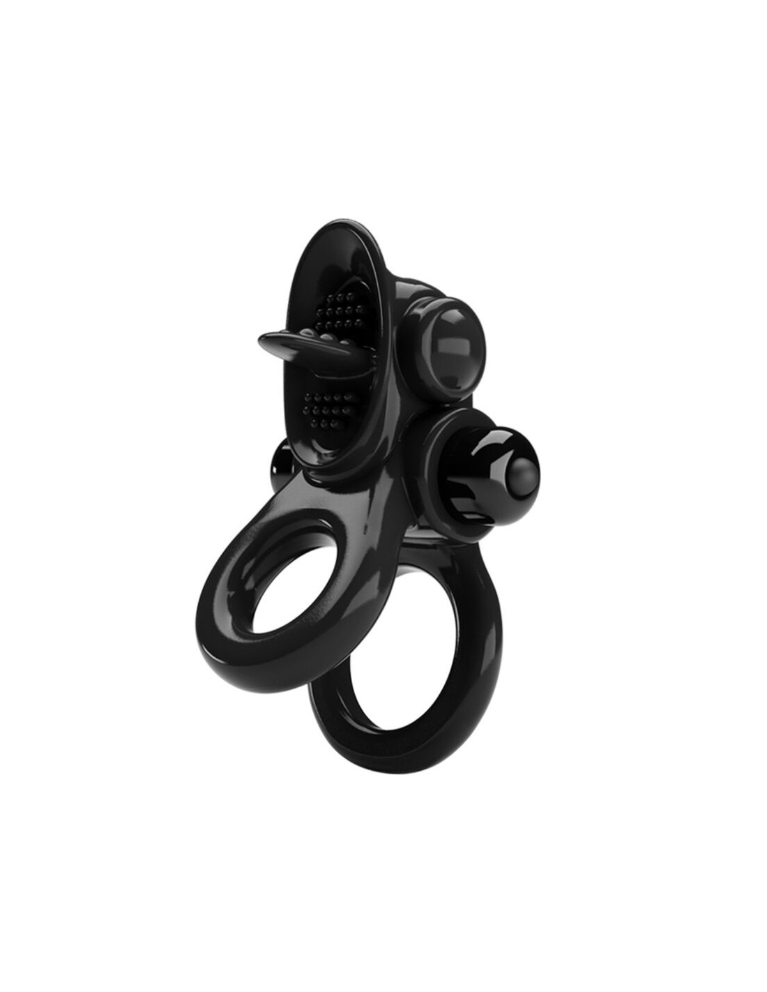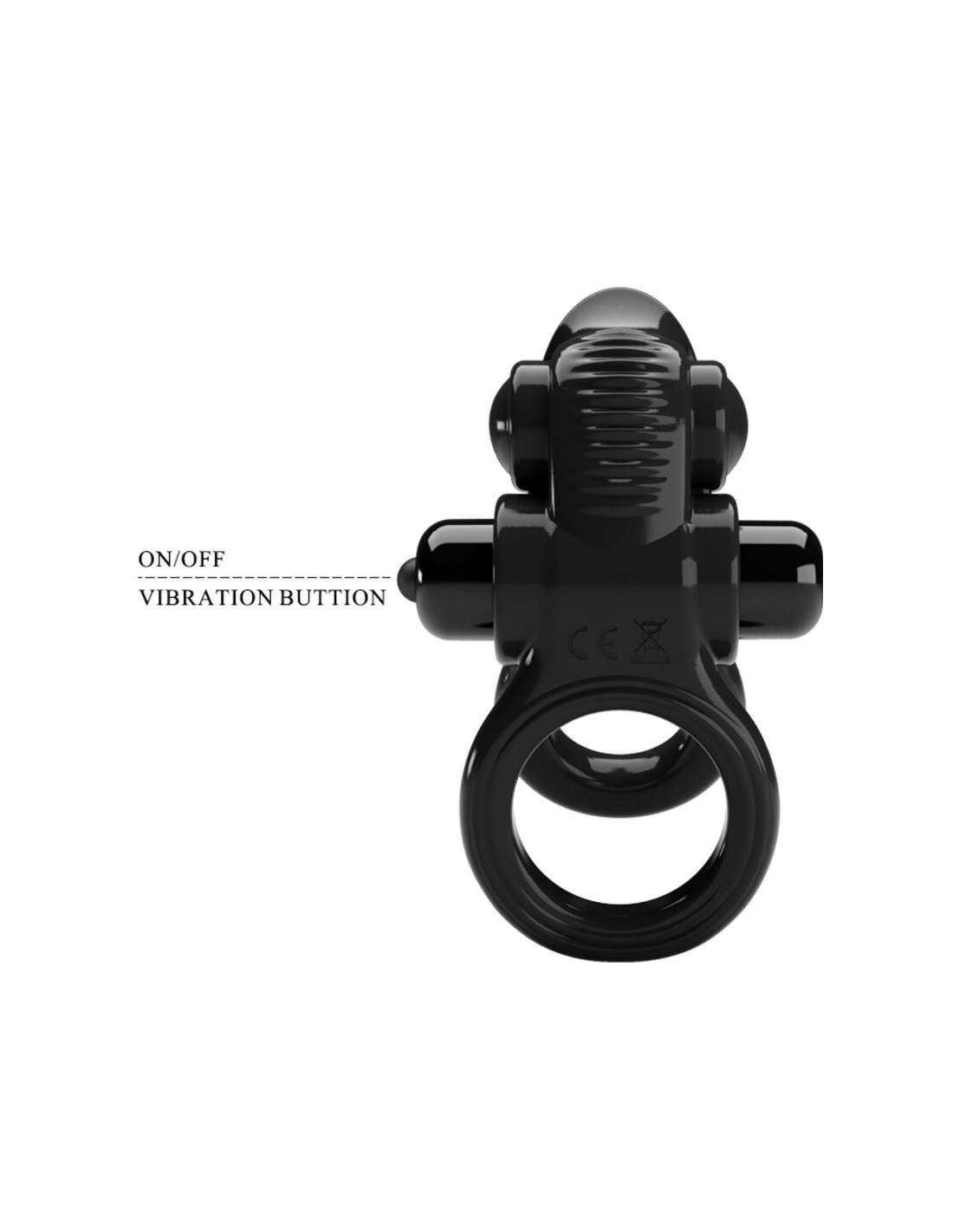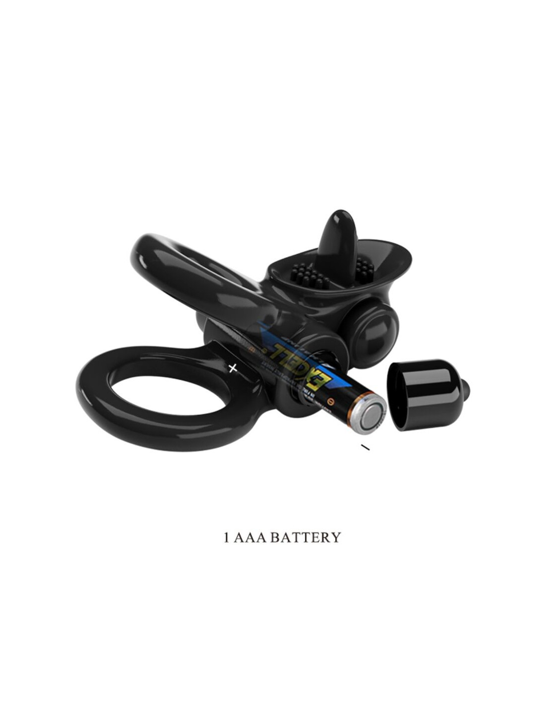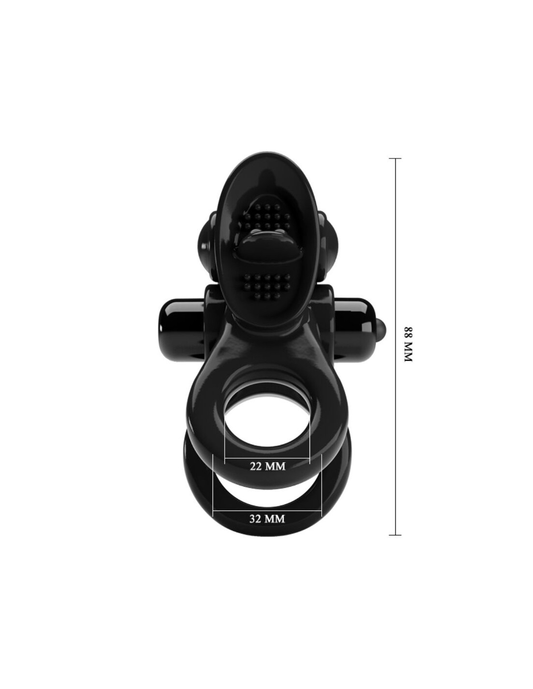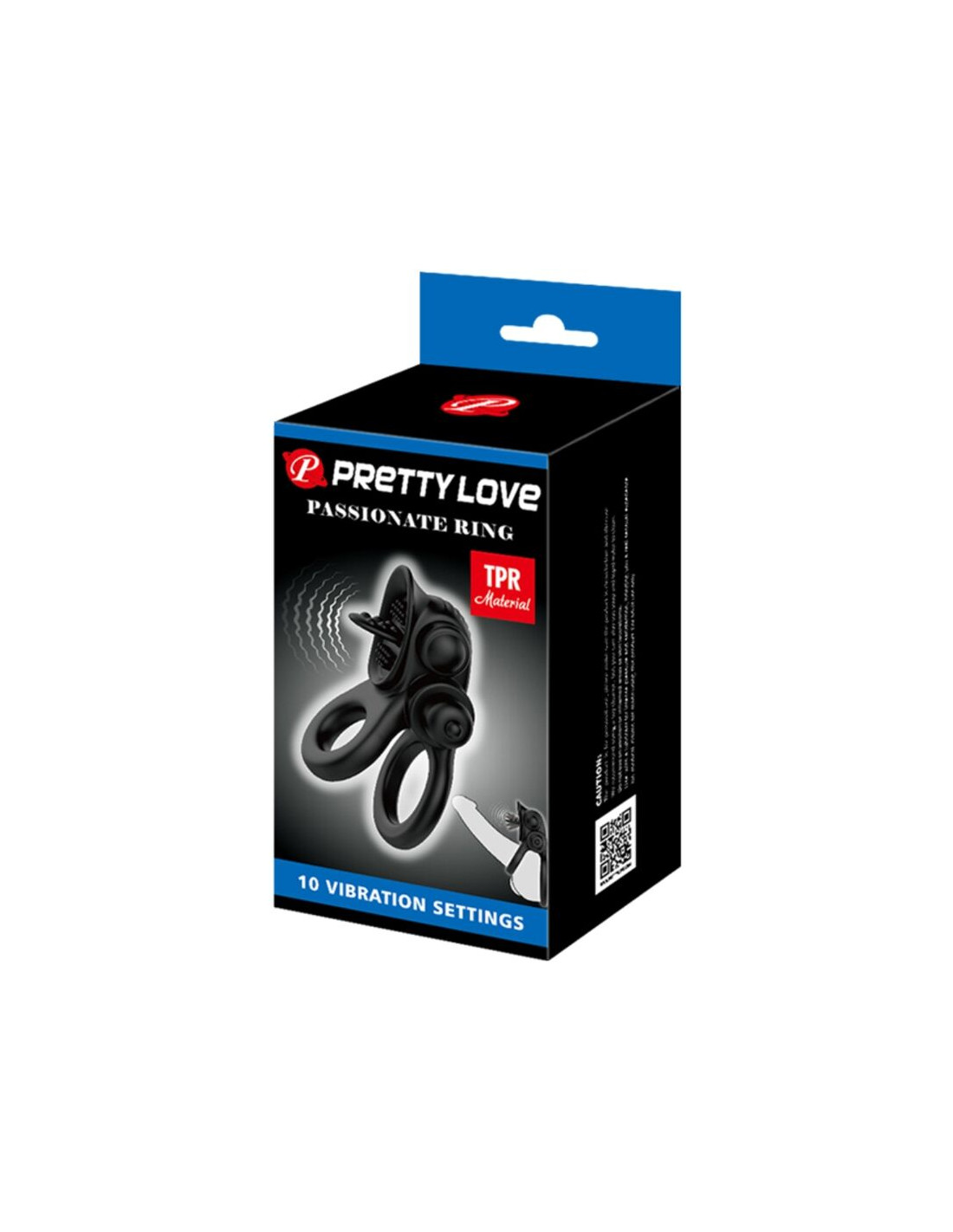 PRETTY LOVE - PASSIONATE RING DOBLE ANILLO VIBRADOR + ESTIMULADOR CLÍTORIS NEGRO