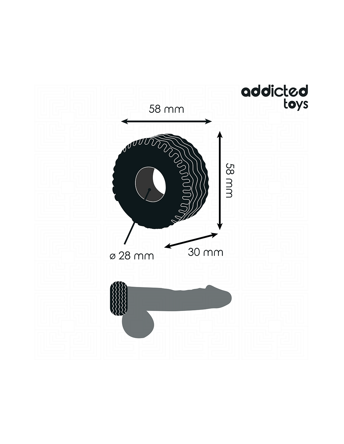 Con un ancho total de 58 mm, el anillo está diseñado para envolver el pene de manera segura, proporcionando un ajuste cómodo pero firme.