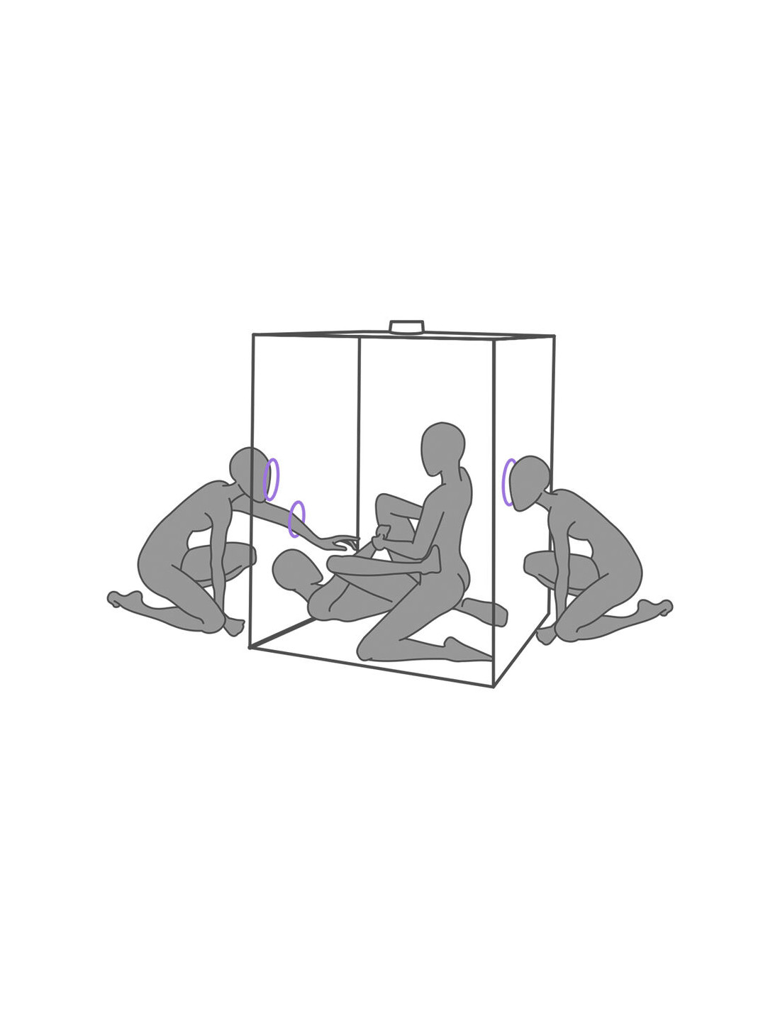 La cabina SCANDALE ofrece un espacio cerrado donde las fantasías más íntimas se pueden experimentar tanto en encuentros privados como en escenarios de exhibicionismo. El sistema de bridas Holedome y Eyedome garantiza una sujeción versátil, mientras que los ventiladores Flipping Fans proporcionan una estimulación adicional. La luz LED crea la atmósfera perfecta para cada sesión, transformando cada momento en algo intenso y memorable.