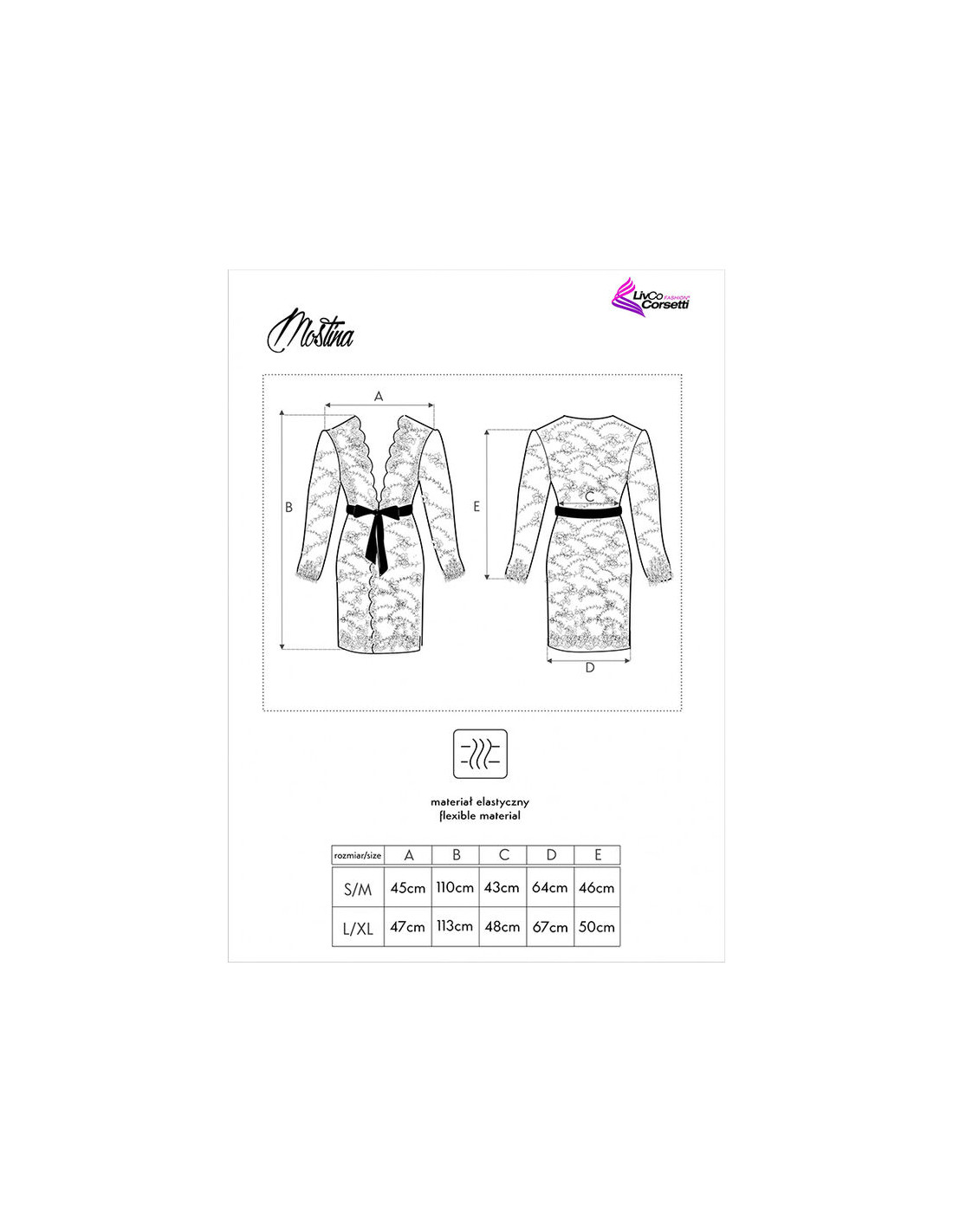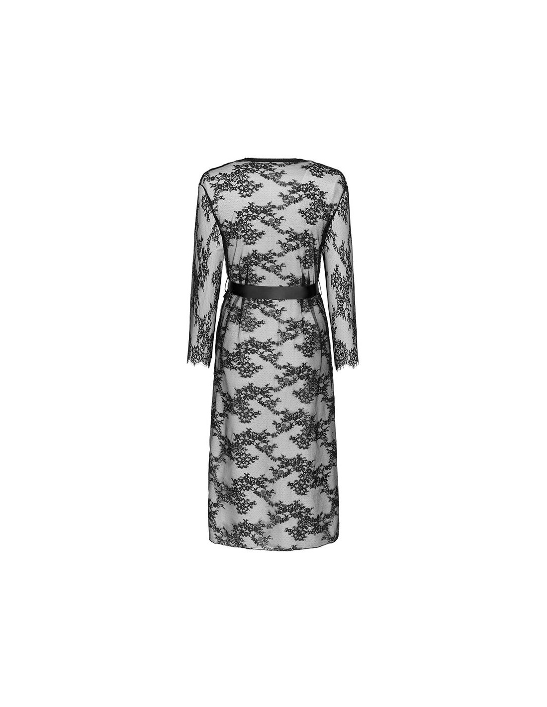 Un albornoz de ensueño para las mujeres que gustan de la lencería sensual. Atractivo, sexy, negro, largo hasta media pantorrilla. El material del que está hecha la bata es poliamida. Transparente, con un delicado estampado floral. El albornoz tiene mangas largas y adornos decorativos en la parte delantera y en las mangas. Una amplia faja negra que se puede atar alrededor de la cintura añade un gran encanto y una apariencia original. Ligeramente abierto, lucirá seductor, seductor y muy bonito. Combina muy bien con ropa interior de encaje negro o rojo. Será el outfit perfecto para una cita de striptease. Fabricado con un material que no se arruga, se adapta perfectamente al cuerpo y no se arruga. Si una mujer quiere sentirse cómoda y sueña con encantar al hombre de su vida, este sensual albornoz será la elección perfecta. El producto puede ser un gran regalo para una amiga en el día de San Valentín, para una joven esposa en un aniversario de boda o en otra ocasión. Ofrecido por un hombre amoroso, seguramente traerá una gran alegría a una mujer.