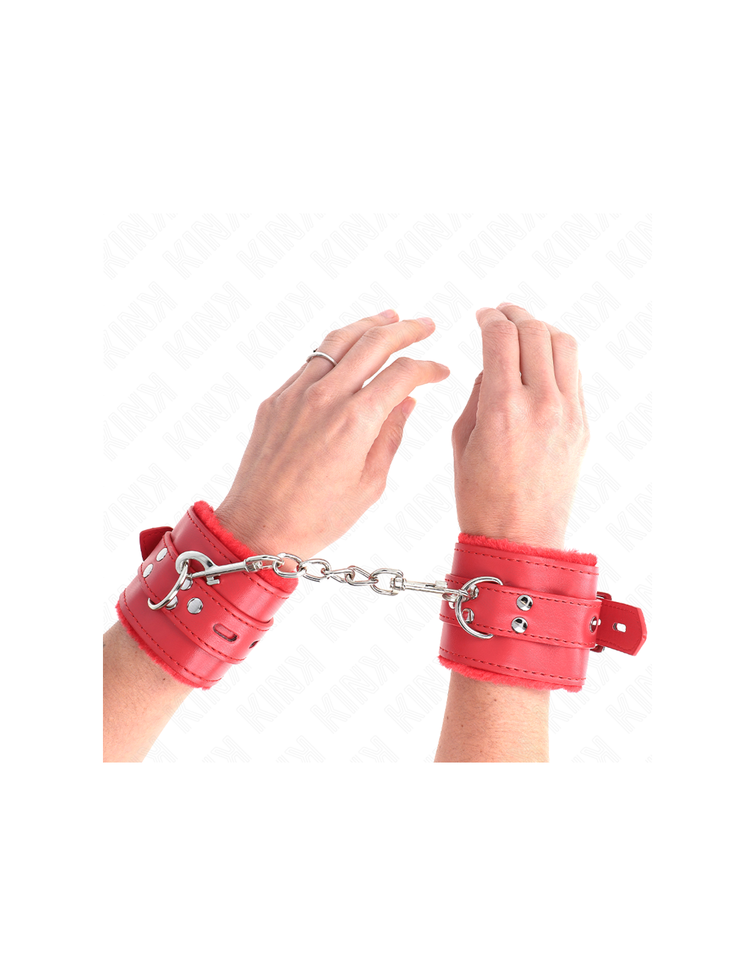 KINK - MUÑEQUERAS FORRADAS CON AGUJEROS CUADRADOS ROJO Y CORREA ROJO AJUSTABLE 17-29 CM X 6 CM