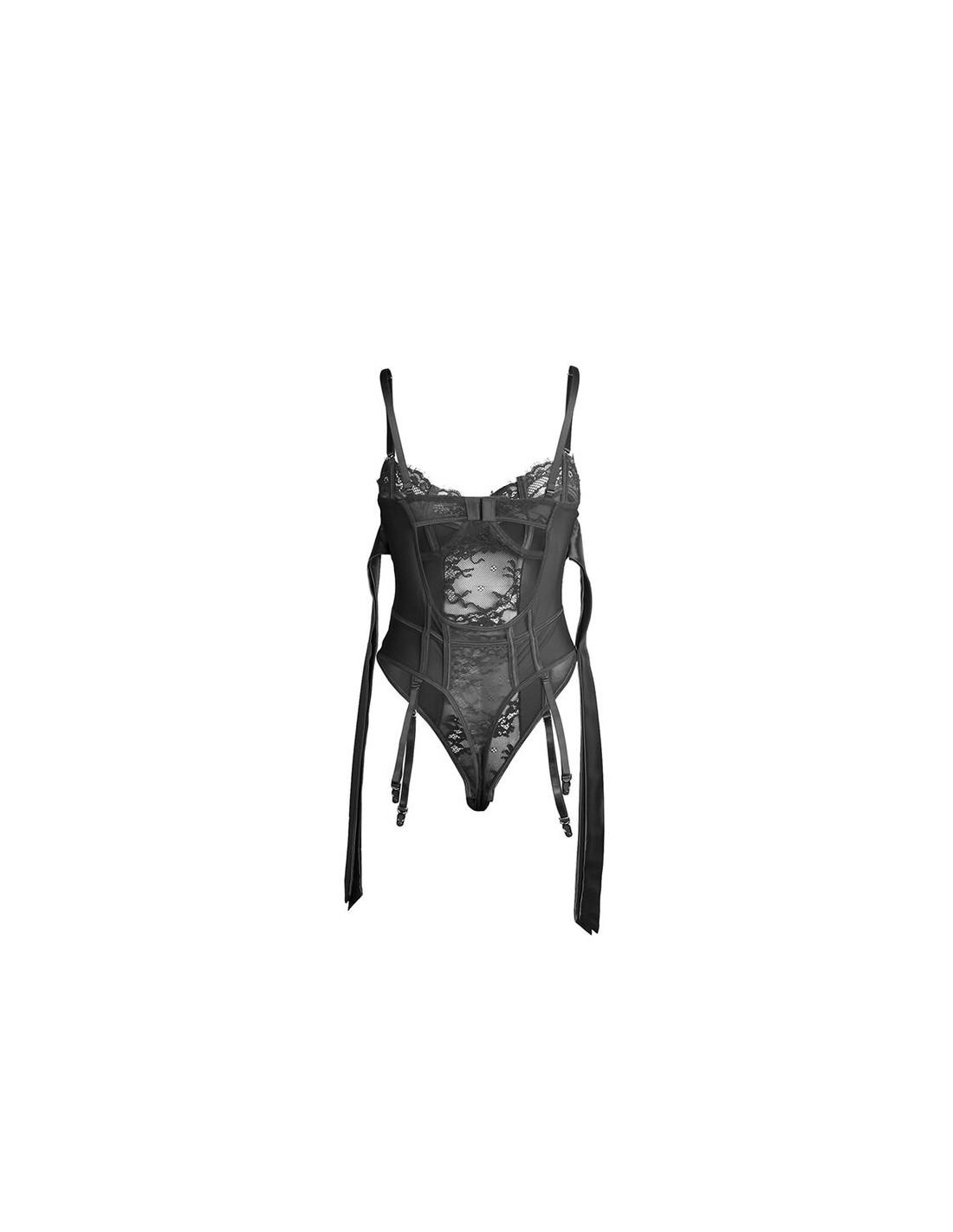 SUBBLIME - 955502 BODY DE ENCAJE CON LAZOS Y LIGAS NEGRO L/XL