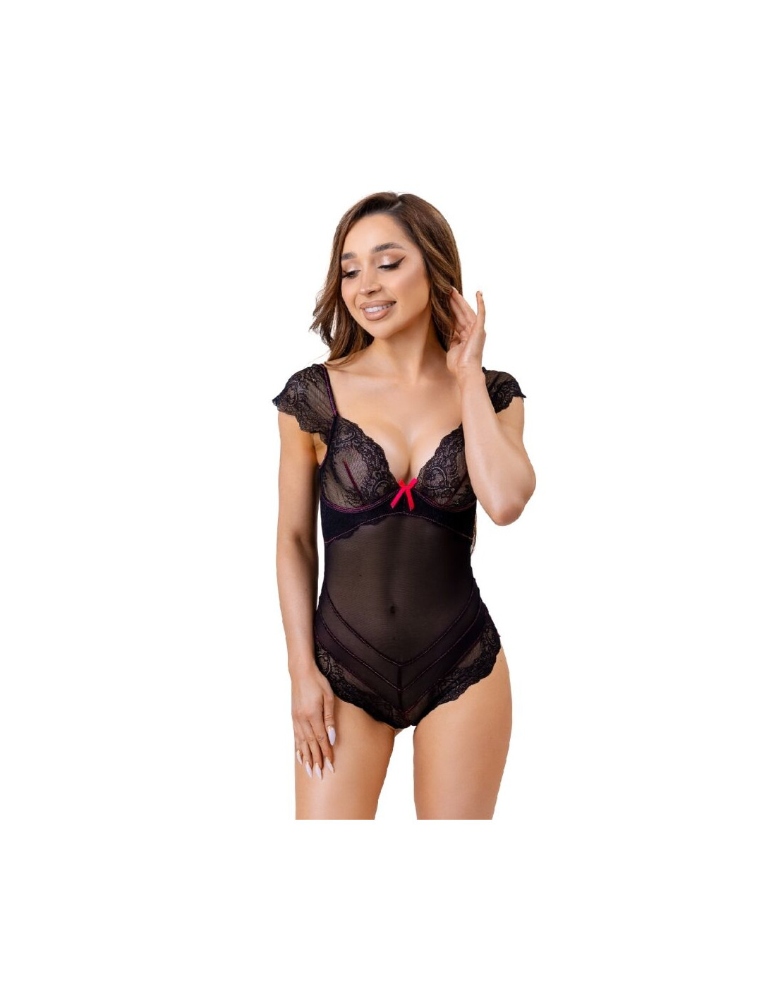 LIVCO CORSETTI FASHION - EVELYN LC 20243 BODY CON ADORNOS DE ENCAJE Y TRANPARENCIAS NEGRO S/M
