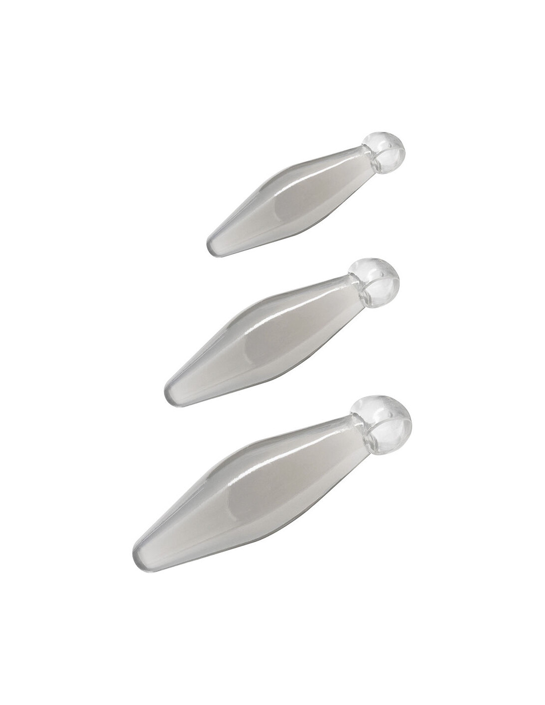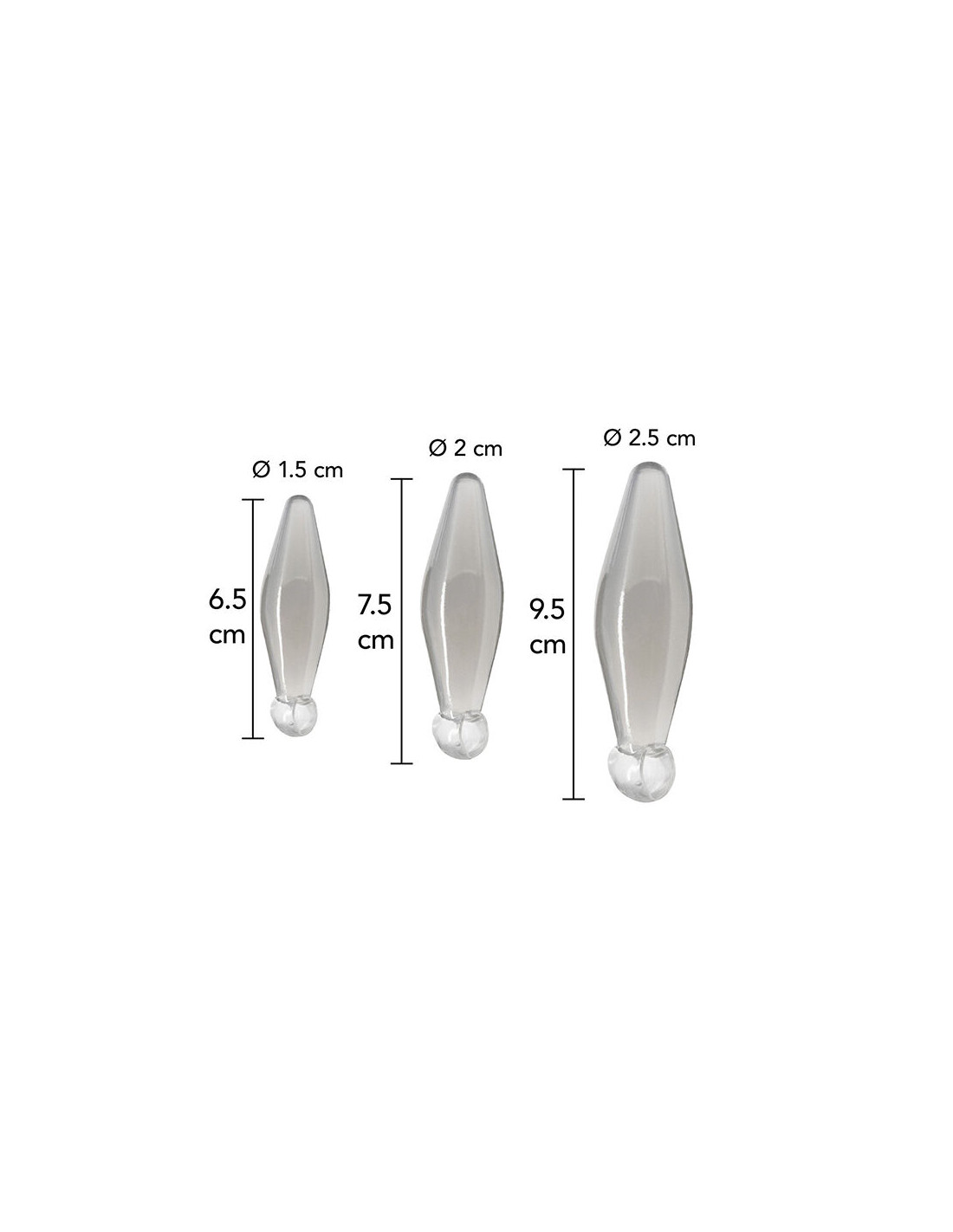 Fabricados con silicona de alta calidad, suave al tacto, flexible y segura para el cuerpo, estos plugs cuentan con una base ancha para evitar deslizamientos no deseados y ofrecer un agarre firme. El set incluye tres tamaños distintos, lo que permite avanzar paso a paso y adaptar la experiencia a cada nivel de comodidad o deseo. Su diseño minimalista, discreto y funcional los convierte en el complemento perfecto para juegos en solitario o en pareja.