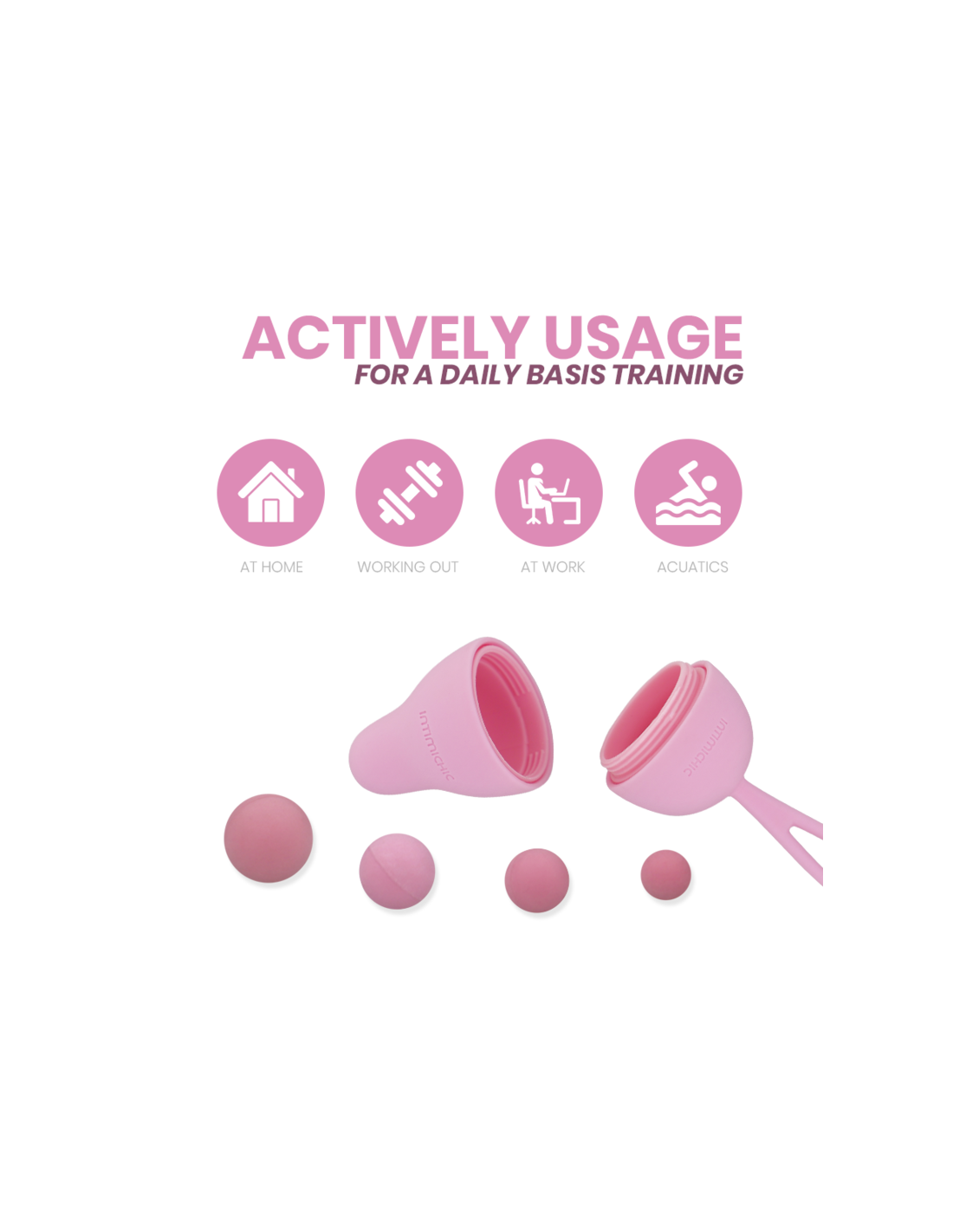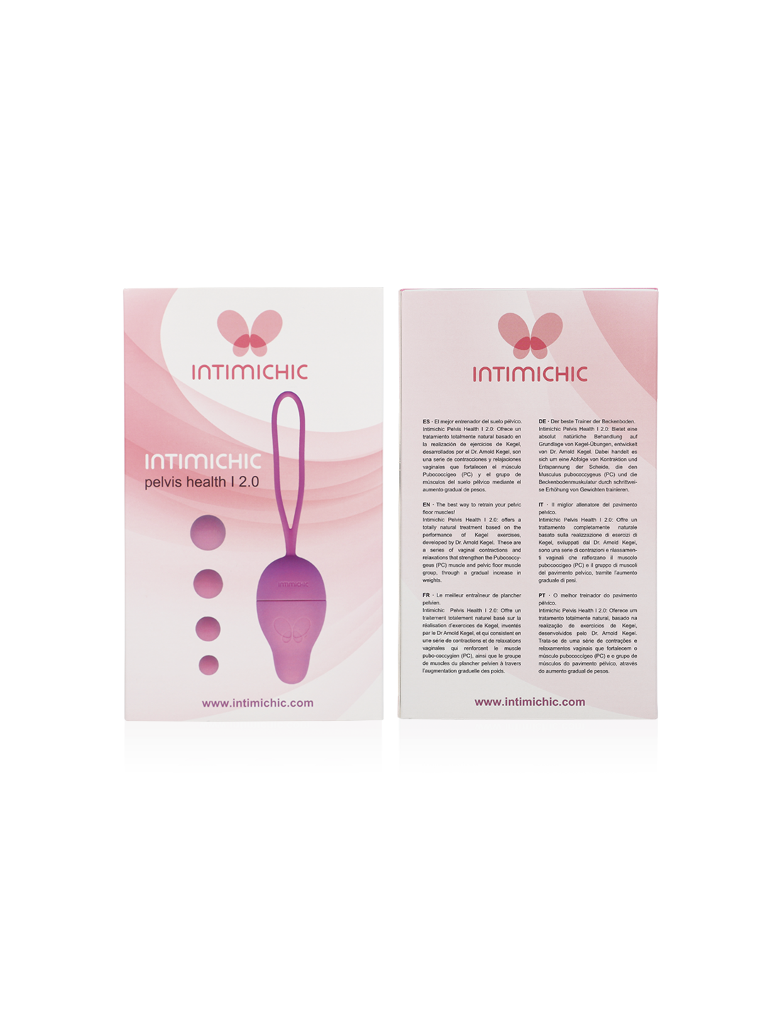 Intimichic Pelvis Health I 2.0 ; Basado en la realización de ejercicios de Kegel, desarrollados por el Dr. Arnold Kegel, son una serie de contracciones y relajaciones vaginales que fortalecen el músculo Pubococcígeo (PC) y el grupo de músculos del suelo pélvico mediante el aumento gradual de pesos.