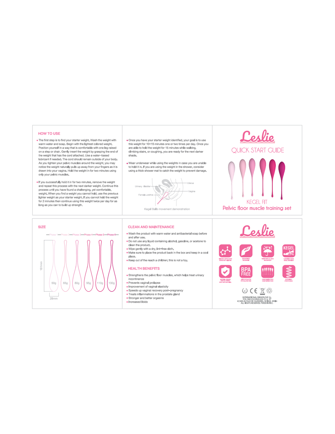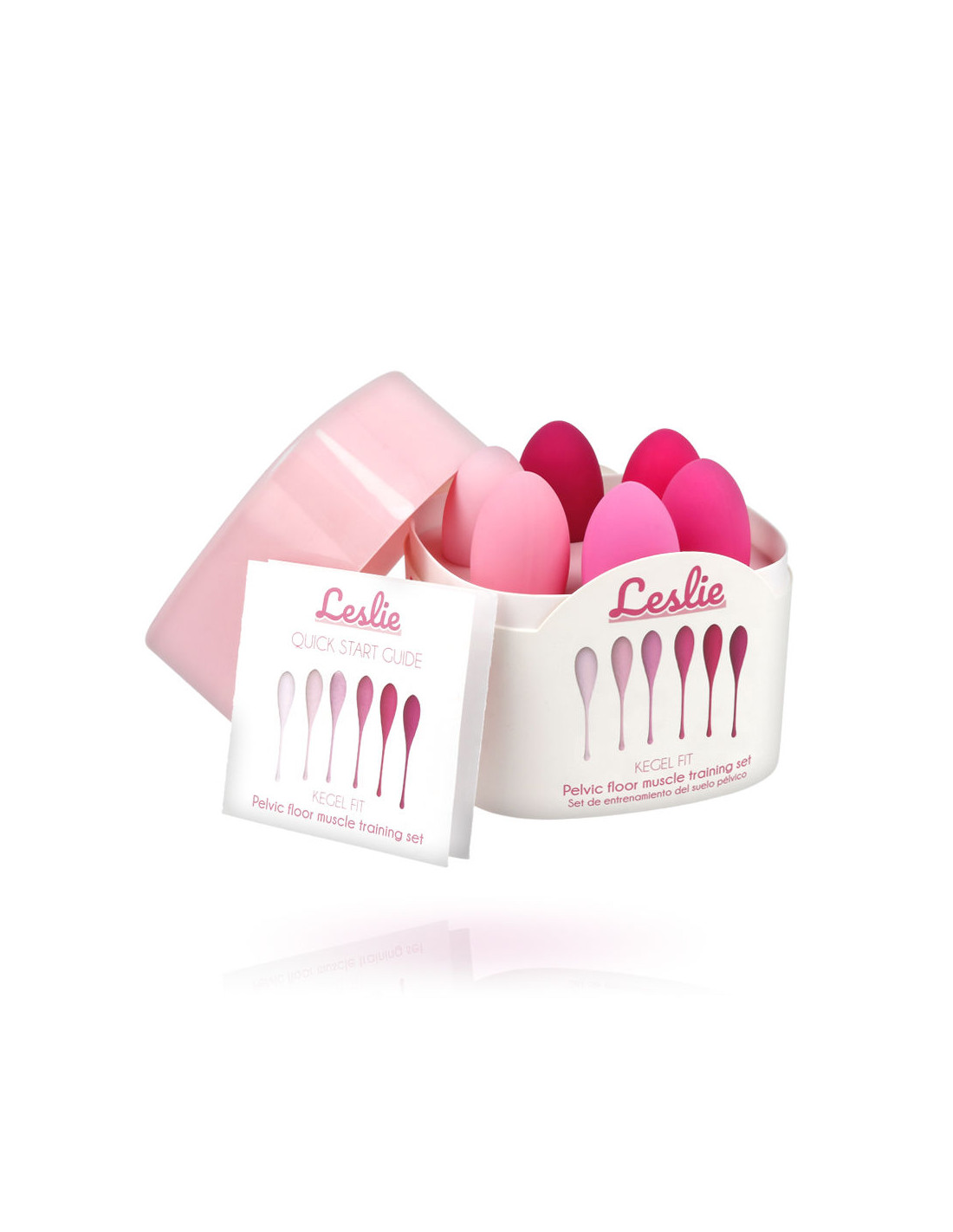 Este entrenador vaginal de los musculos del suelo pelvico puede ser usado por mujeres que se inician o mujeres en nivel avanzado porque Leslie tiene todos los pesos disponibles.
