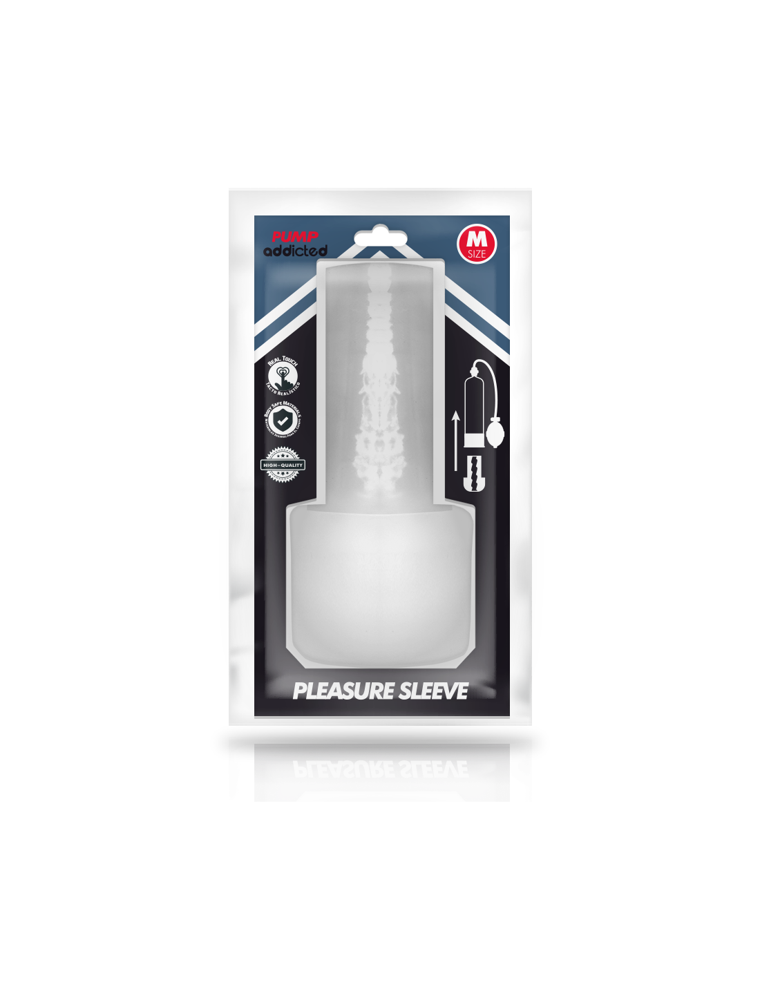 ¡Te encanta verte en acción, y ahora puedes hacerlo con el masturbador pleasure Sleeve mientras utilizas tu PUMP ADDICTED! Presta atención a como cada centímetro de tu pene penetra este masturbador transparente ultra estrecha y has realidad tus perversas fantasías más voyeuristas. Tendrás la sensación de estar penetrando una suave vagina o ano (según el modelo) y además podrás observar como el masturbador transparente de acaricia con su textura interior creando un efecto de succión, aumentando tu estimulación y masajeando tu pene con cada golpe, mientras que el realístico material con el que está fabricado (TPE) envuelve cada milímetro de tu pene como un amante real. Hazle el amor a esta vagina hasta que explotes, para a continuación ver como fluyen tus fluidos en su interior.