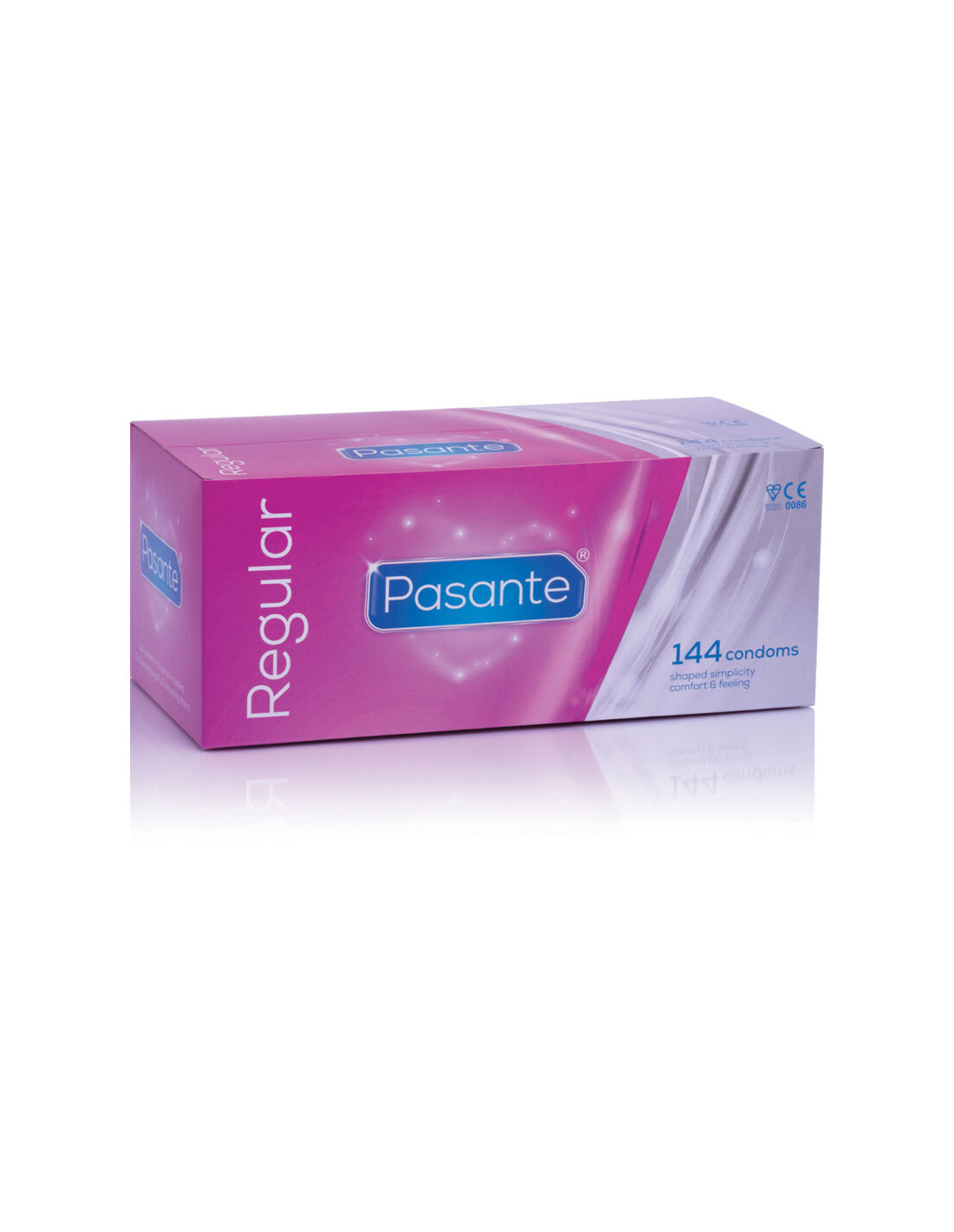 Los preservativos regulares Pasante tienen una ligera conicidad para una sensación natural. Liso, de color natural y con punta de tetina.