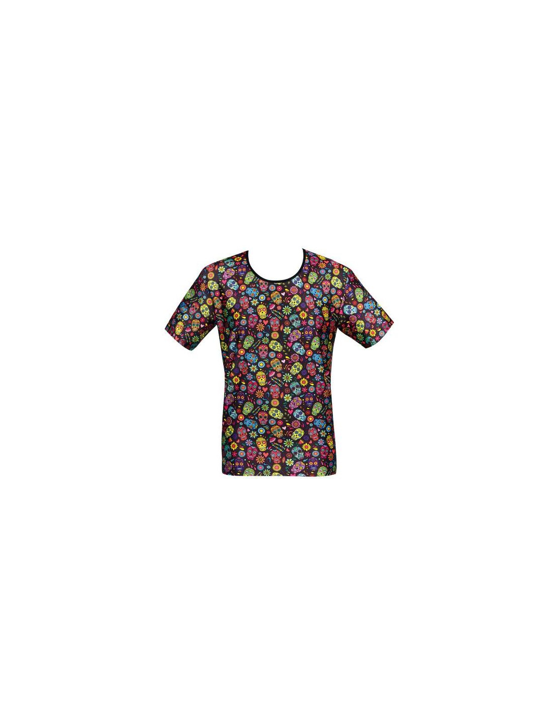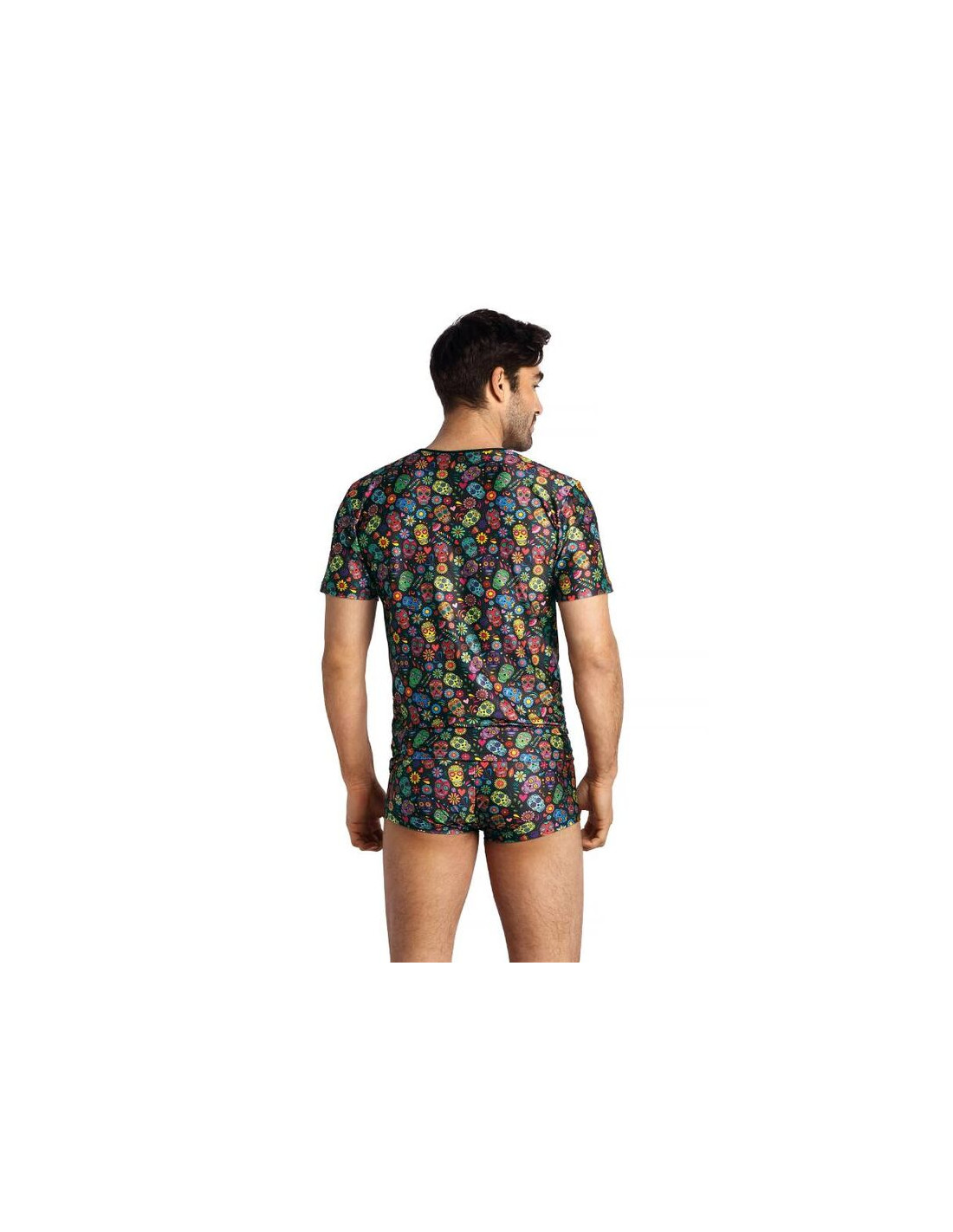 Modal suave de color claro con estampado de pequeñas flores y calavera