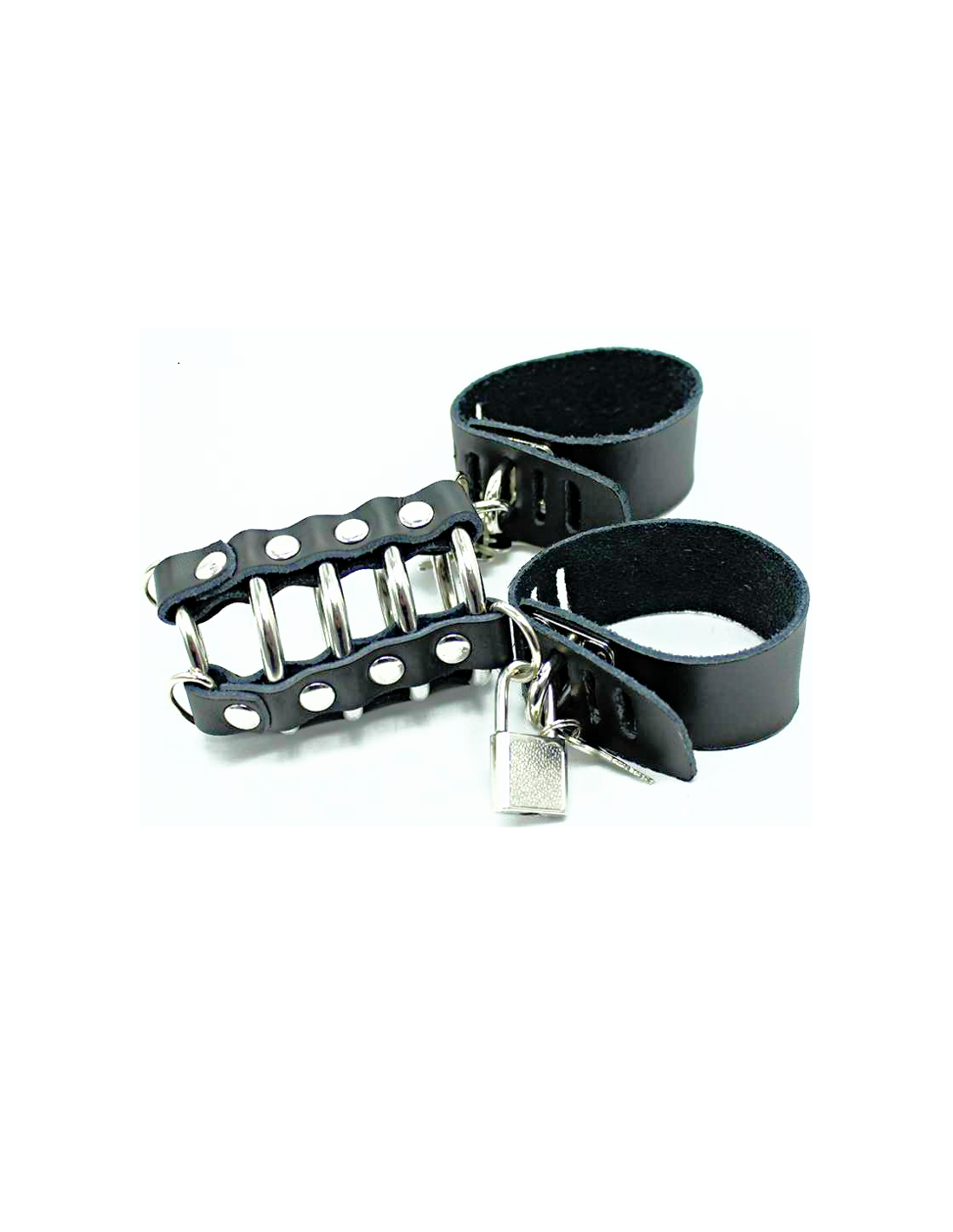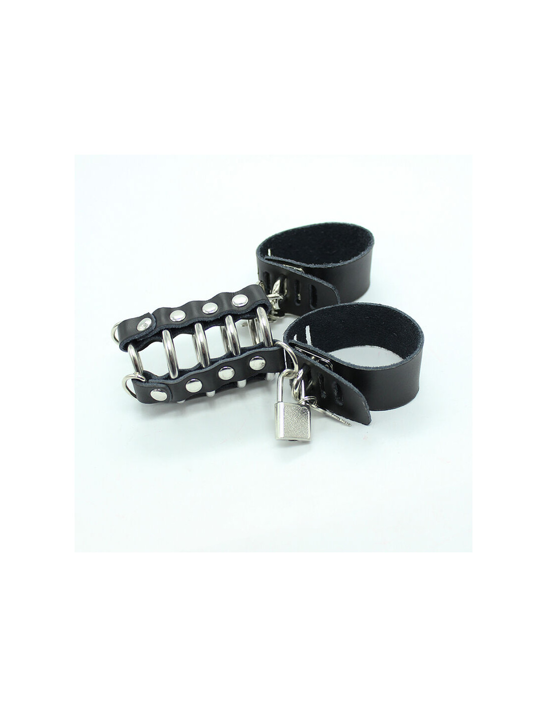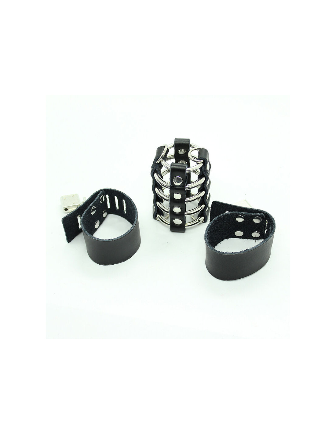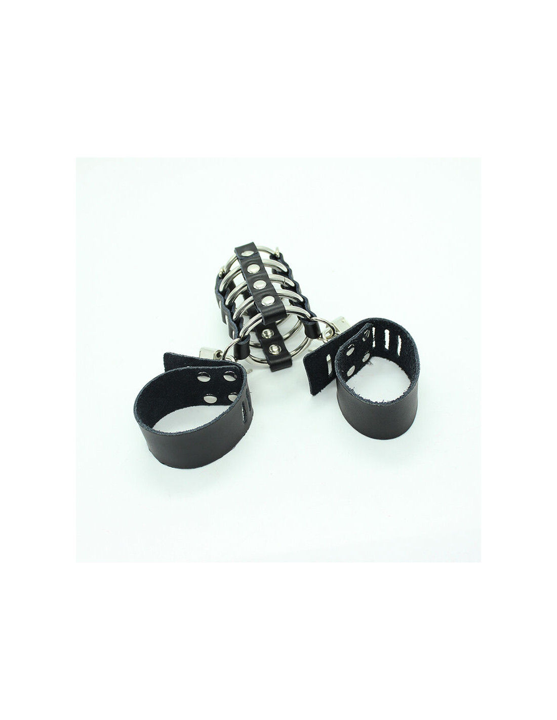 OHMAMA FETISH - JAULA PENE CON ANILLAS METALICAS Y CORREAS PIEL