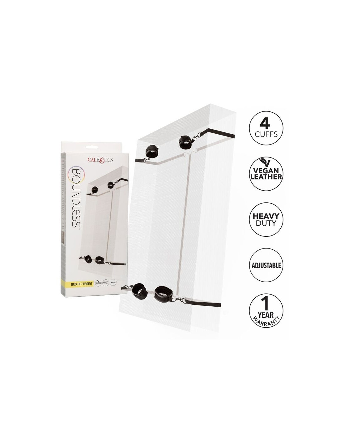 Tenga cuidado: ¡el sistema de restricción de cama Boundless puede atar sus noches durante mucho tiempo! Este juguete para adultos viene con muñequeras y tobillos que ofrecen cierres estilo velcro y aplausos universales, lo que garantiza la máxima comodidad y sujeción.