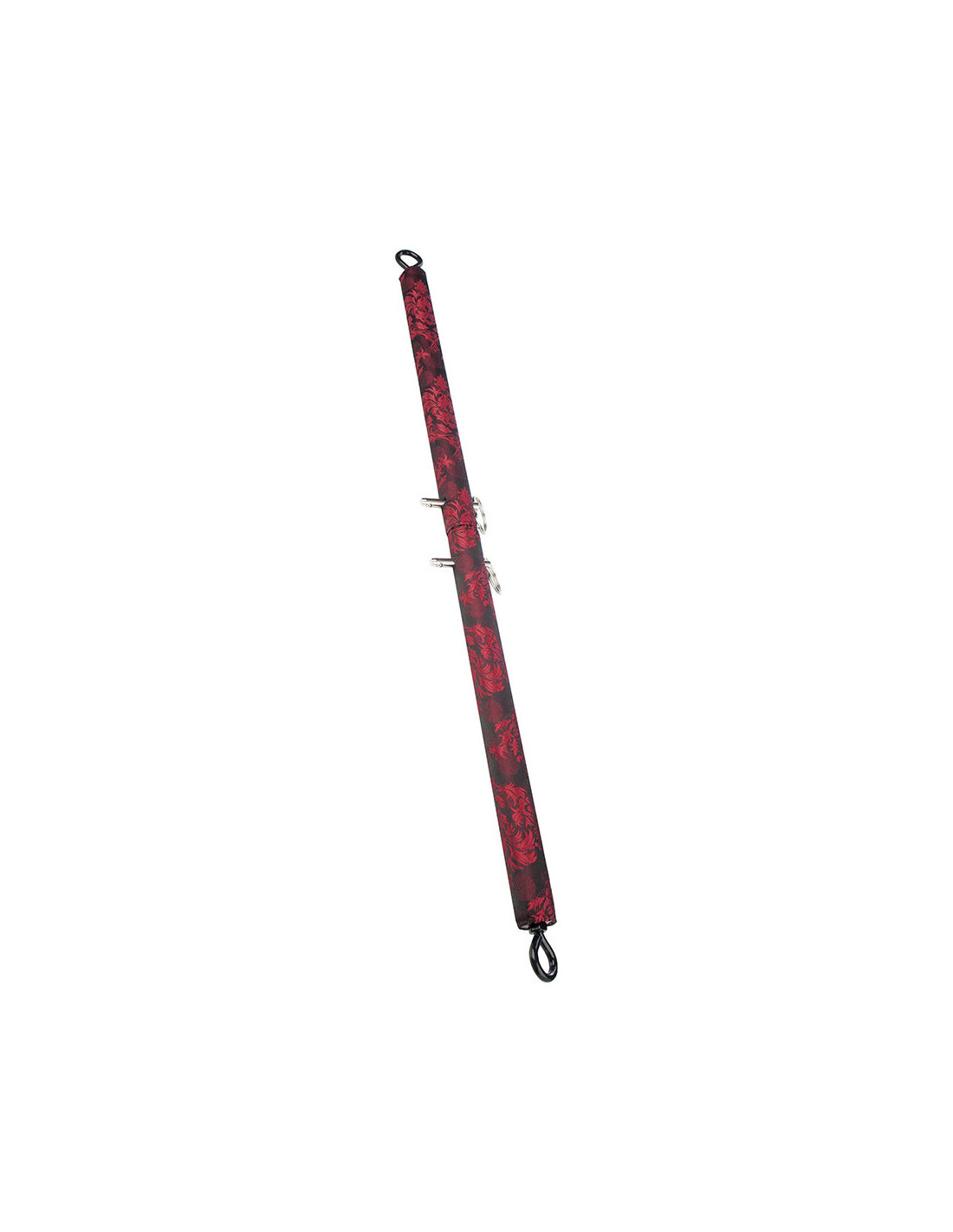 Libera el control y sumérgete en el deseo con la Barra Separadora Scandal. Esta robusta barra metálica ajustable está revestida en una lujosa tela de diseño en rojo y negro y cuenta con juntas tóricas universales para conectar tus esposas favoritas. Con un ancho extensible de hasta 91 cm, está diseñada para mantener tus piernas abiertas en las posiciones más seductoras, perfecta para provocar, complacer y entregar. Tanto si eres nuevo en el bondage como si eres un sumiso experimentado, esta barra separadora potencia la conexión emocional y aumenta las sensaciones. A tu dominante le encantará la vista, y a ti te encantará la emocionante vulnerabilidad de estar completamente expuesto. Pon a prueba tus límites, genera anticipación y da rienda suelta a tus fantasías: esta barra está diseñada para brindar confianza, tensión y un placer inolvidable.