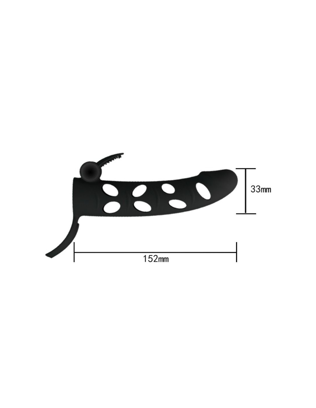 Porque el tamaño si importa, ahora Pretty Love trae esta funda de silicona para que puedas alcanzar hasta los 15.2 cm. Está hecho con silicona de primera calidad, resistente al agua para que puedas usarla en la ducha o spa, con anillo de sujeción en los testículos e incorpora una bala vibradora y texturas a la altura del clítoris con lo que aumentareis el placer en pareja. Además de ganar unos centímetros en longitud y grosor de más, es perfecto para personas con eyaculación precoz o disfunción erectil para poder seguir disfrutando.