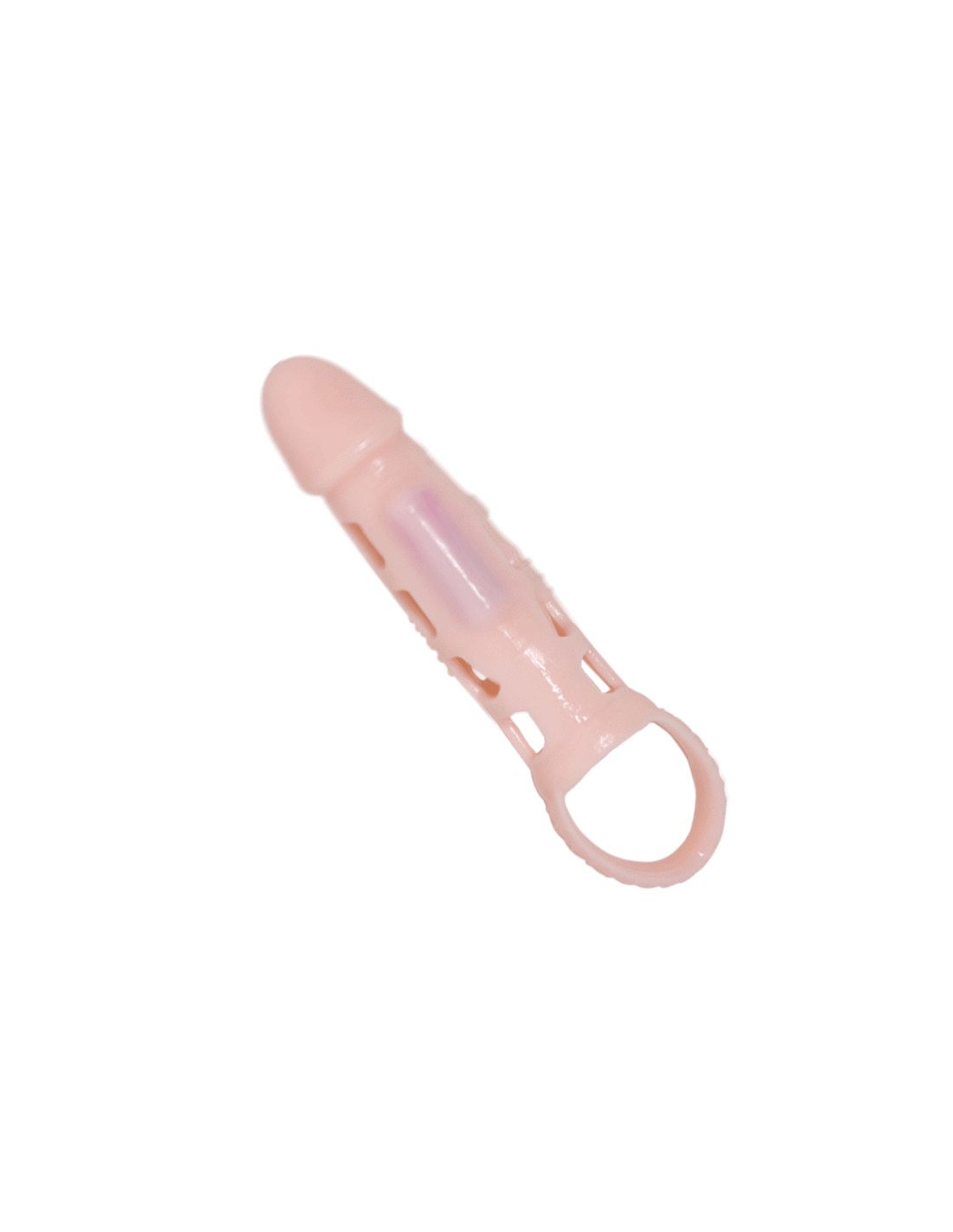 Funda extensora de pene con bala incorporada y strap para los testiculos para que aumente tanto en grosor como en longitud y así aumentar el placer de ambos durante las relaciones. Tiene un diseño realístico y funcional ya que los relieves de los contornos sirve como estimulante para tu pareja y está fabricado en TPR de alta calidad.