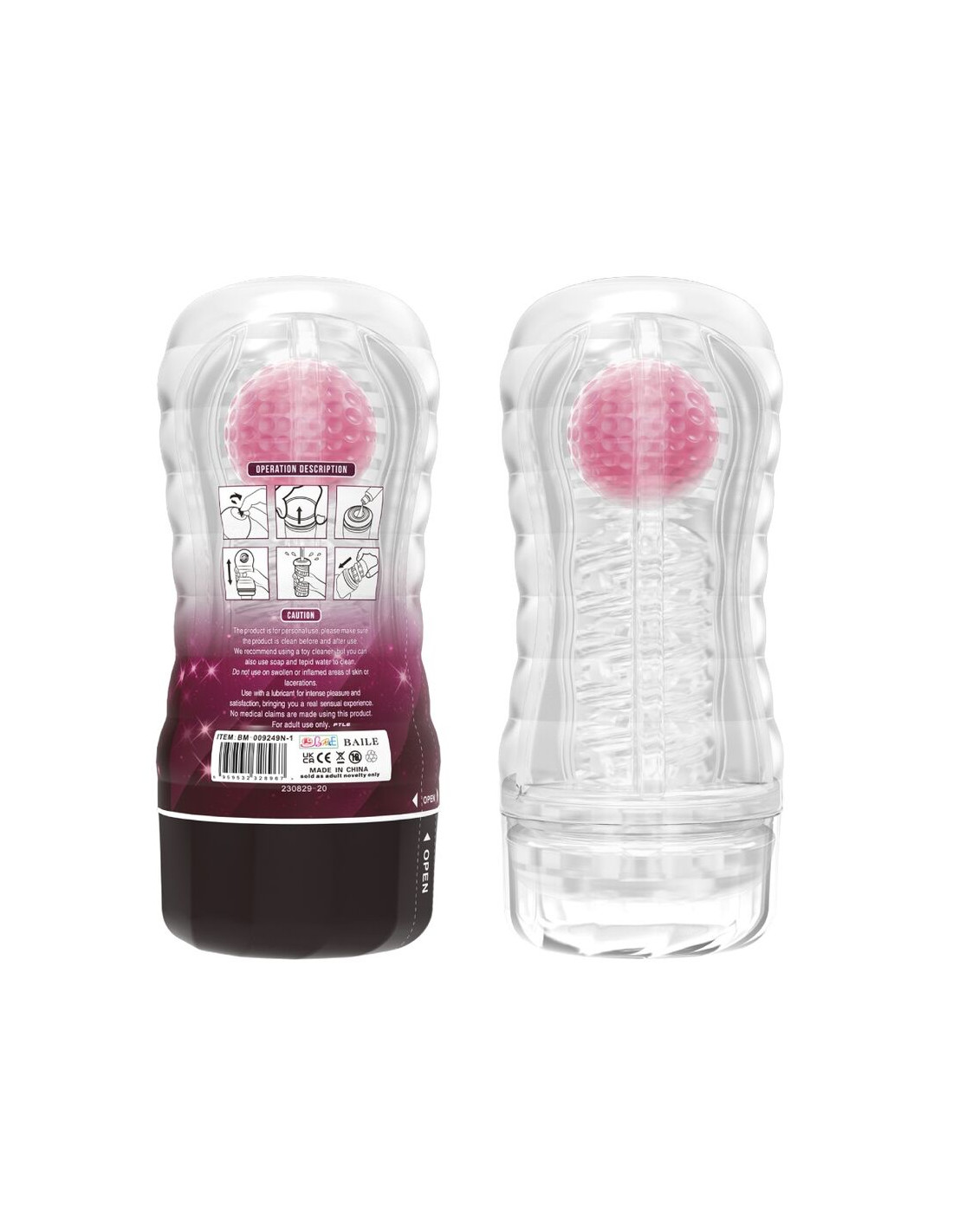 Disfrute de un placer profundo y satisfactorio con esta copa masturbadora con ruedas. Este fantástico juguete masculino te brindará una experiencia mucho más de lo habitual. Los puntos de entrada ultrarrealistas y las mangas internas acanaladas y estriadas crean una experiencia de penetración perfecta, mientras que el diseño de bola rodante le brinda máximas sensaciones. Disfruta del canal interior texturizado hasta alcanzar una intensa liberación orgásmica.
