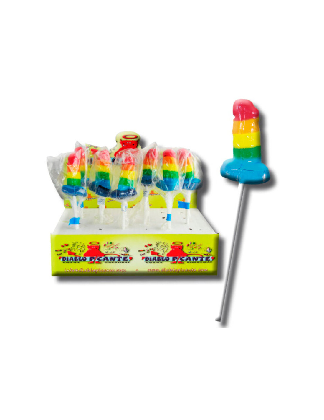 PIRULETA DE GOMINOLA CON FORMA PITO SABOR FRUTAS VARIADAS CON LA BANDERA DEL ORGULLO, LGBT.