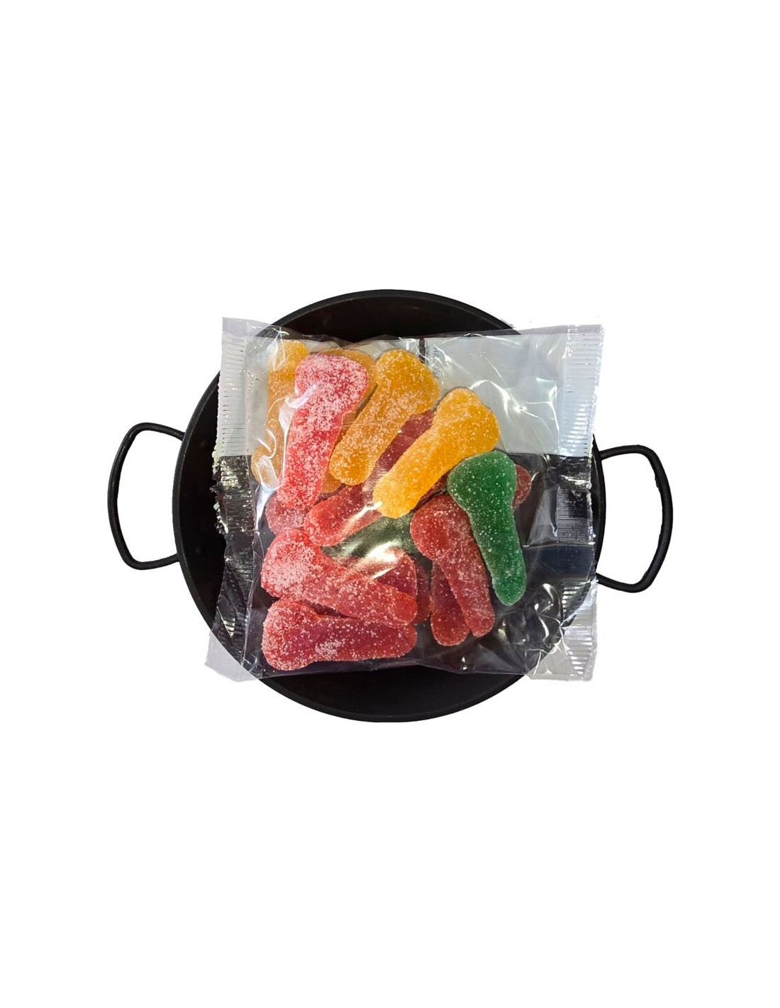 Añade un toque divertido y dulce a tu despedida de soltero/a o fiesta temática con esta paellera llena de gominolas en forma de pene, disponibles en una variedad de colores y sabores. Estas gominolas son el detalle perfecto para crear un ambiente relajado y lleno de risas, además de ser un regalo original que sorprenderá a tus invitados.