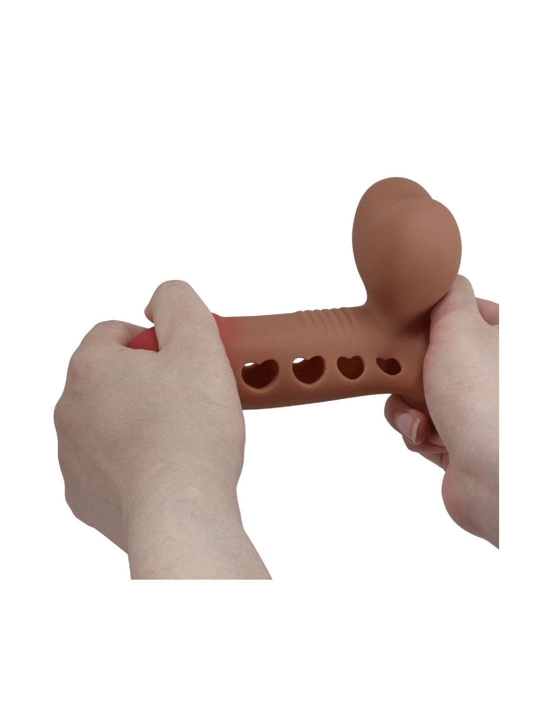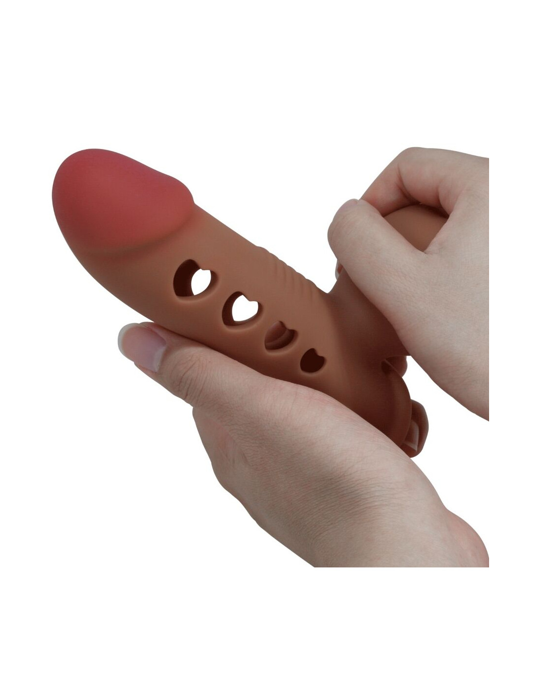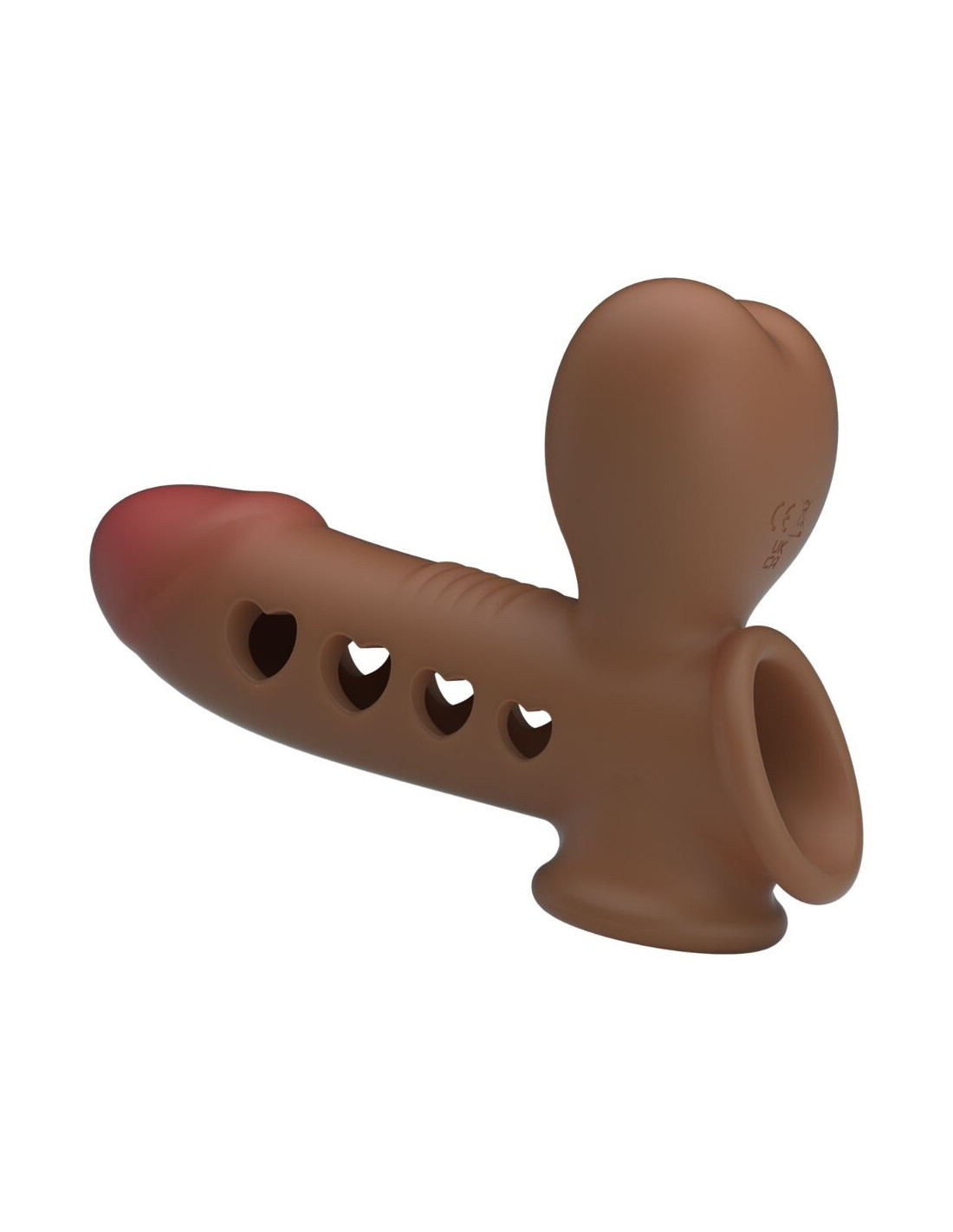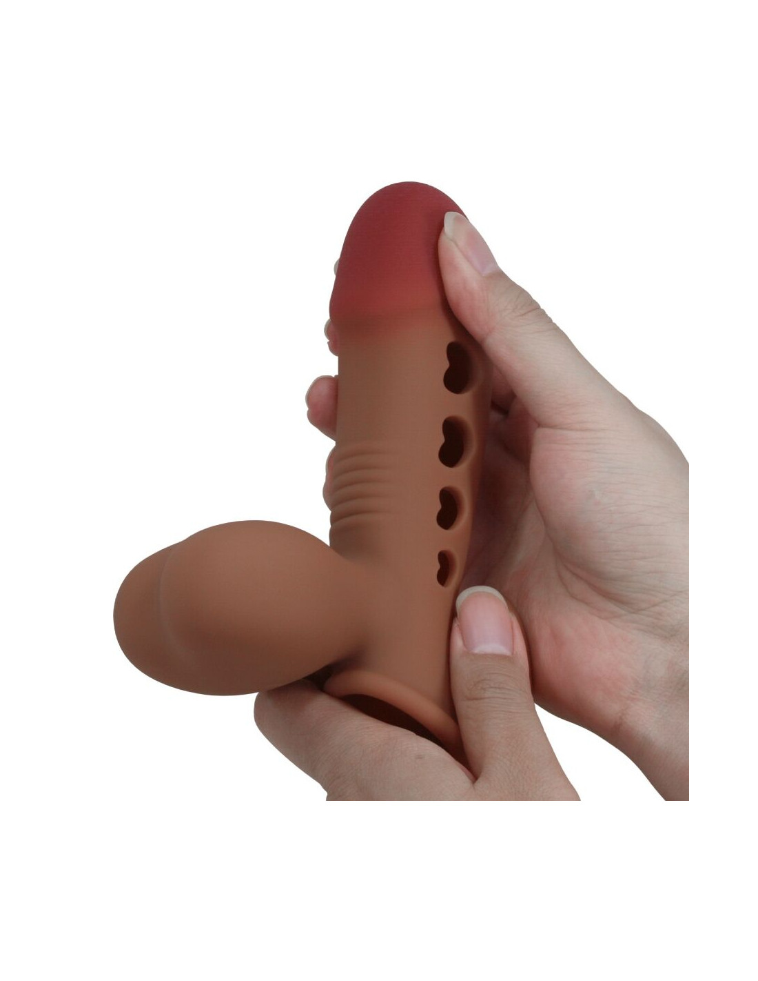 La funda para pene con airbag patentada de Pretty Love añade un grosor adicional a cualquier pene. Impresiona a tu pareja durante horas con una mayor durabilidad. El airbag del glande se inflará con el aire del airbag del testículo apretado durante el sexo. Con la correa envuelta alrededor de los testículos, prolongarás la eyaculación hasta el pico más explosivo que hayas imaginado.