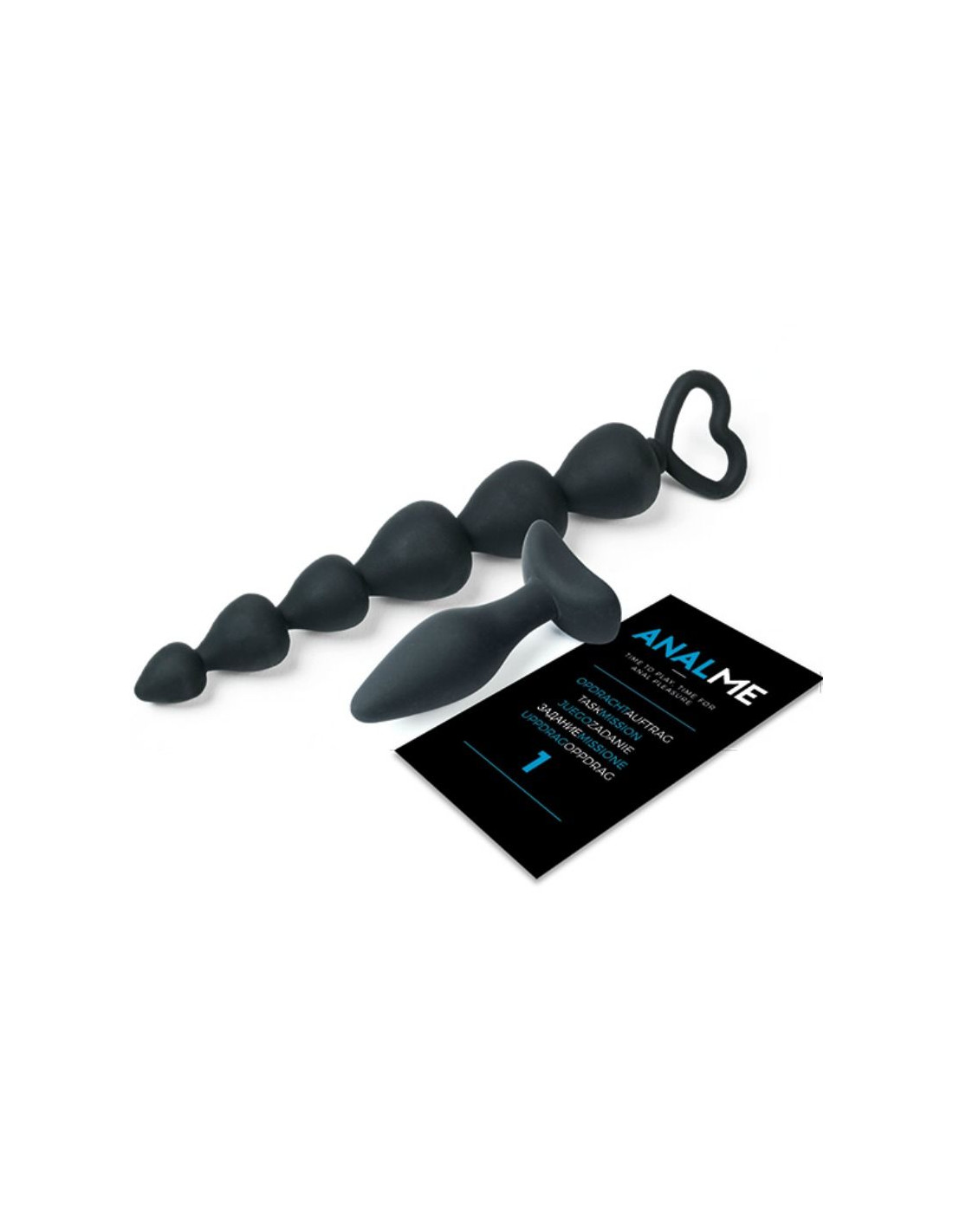Los atributos de juego que se incluyen en esta caja de juegos como un butt plug, cuentas anales y lubricante os mimarán de forma lúdica y cuidadosa. Además, este juego contiene 6 libretas con cantidad de tareas en 10 idiomas: inglés, español, francés, alemán, neerlandés, polaco, ruso, italiano, sueco y noruego.