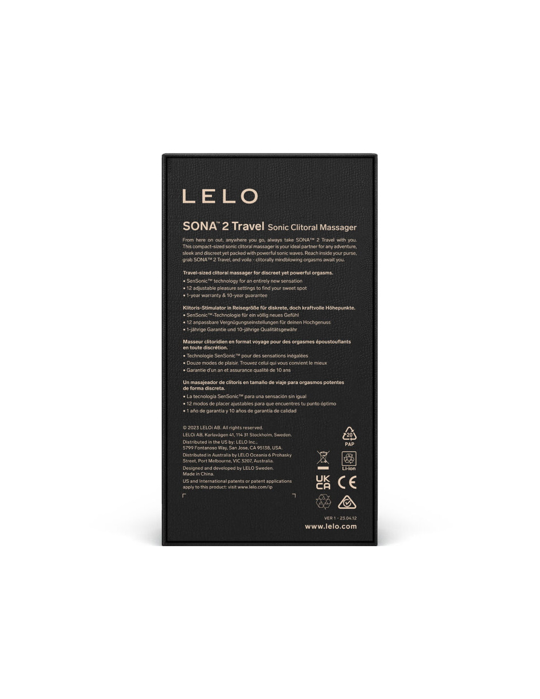 SONA™ 2 Travel es la versión compacta de nuestro superventas SONA™ 2. Ha sido desarrollado para mejorar la experiencia íntima del usuario con su diseño elegante, discreto y compacto. Usa la exclusiva tecnología SenSonic™ de LELO, que ofrece al clítoris una potente estimulación de ondas sónicas para que acabes increíblemente satisfecha. SONA™ 2 Travel es el compañero perfecto para aquellas que buscan el placer en sus múltiples viajes, ya que te permite acceder fácilmente al orgasmo en todo momento.
