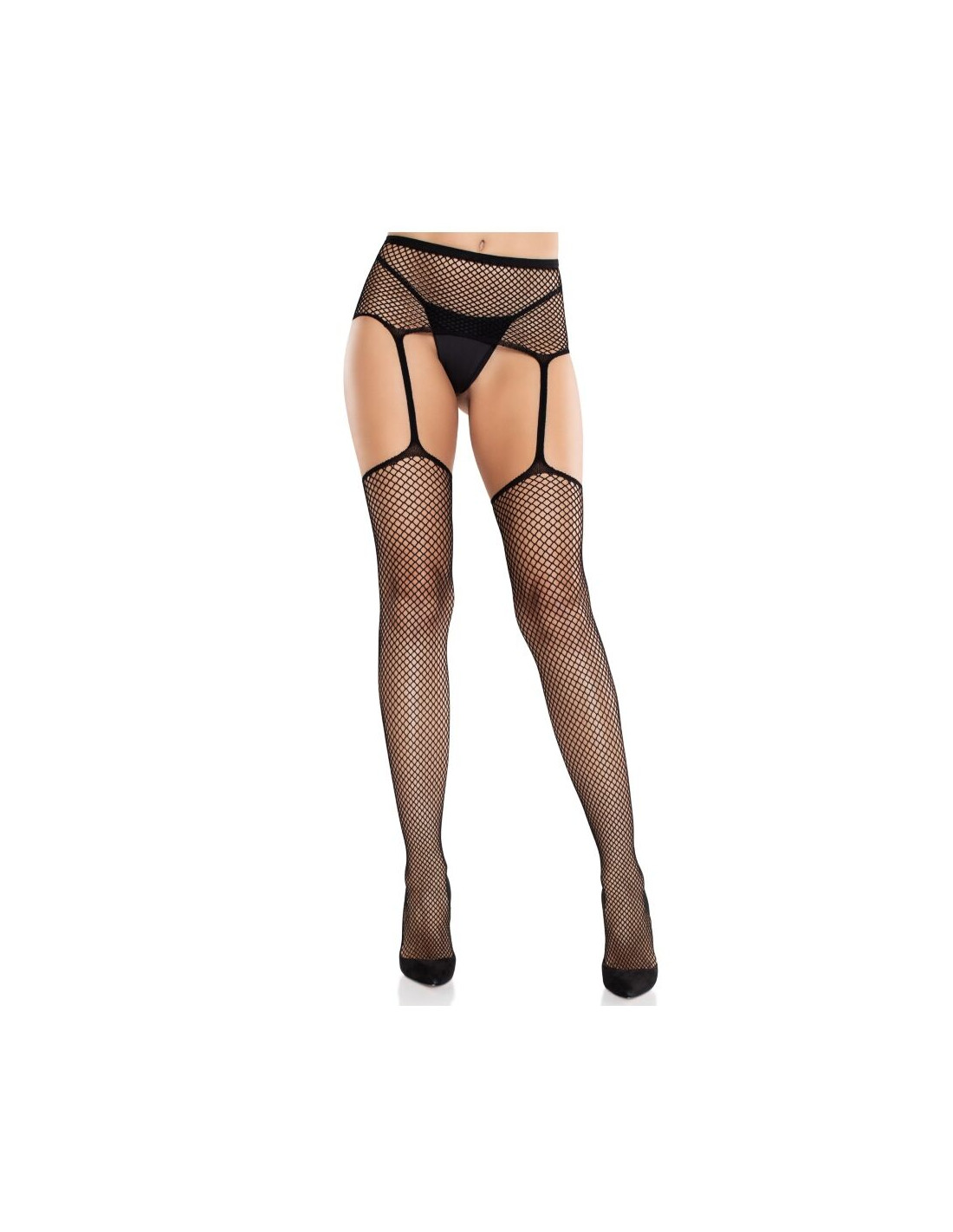 LEG AVENUE - MEDIAS DE ENCAJE CON CRUZ Y PORTALIGAS NEGRO