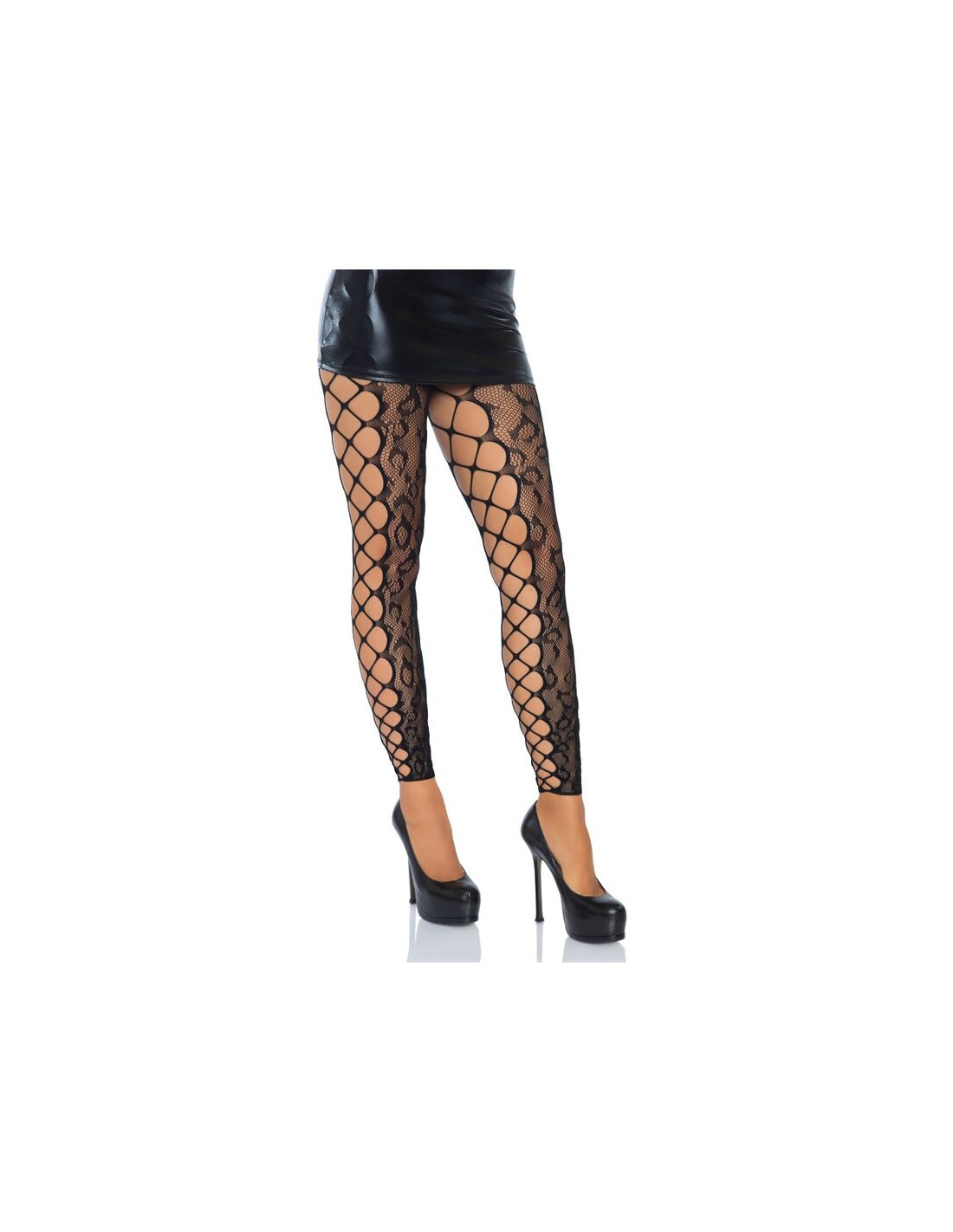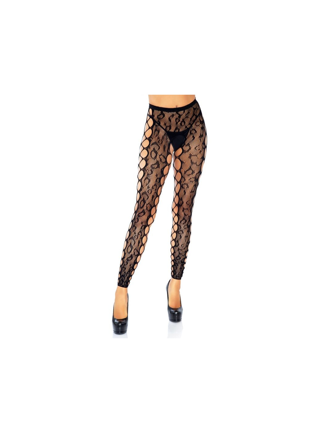 Medias sin pies de encaje de leopardo con entrelazado en los laterales. Con Leg Avenue reforzarás tu feminidad y obtendrás ese toque justo de seducción, sensualidad y elegancia.