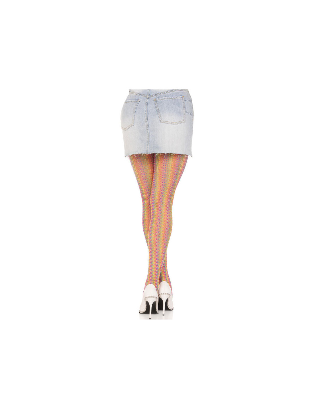 Ilumina tu guardarropa con estas medias arcoíris de red crochet de Leg Avenue. Tu nuevo elemento básico del verano, estas lindas pantimedias cuentan con un intrincado patrón de arco iris tejido que agrega el toque de color perfecto a cualquier atuendo. Ideal para atuendos de festivales y celebraciones del Mes del Orgullo.