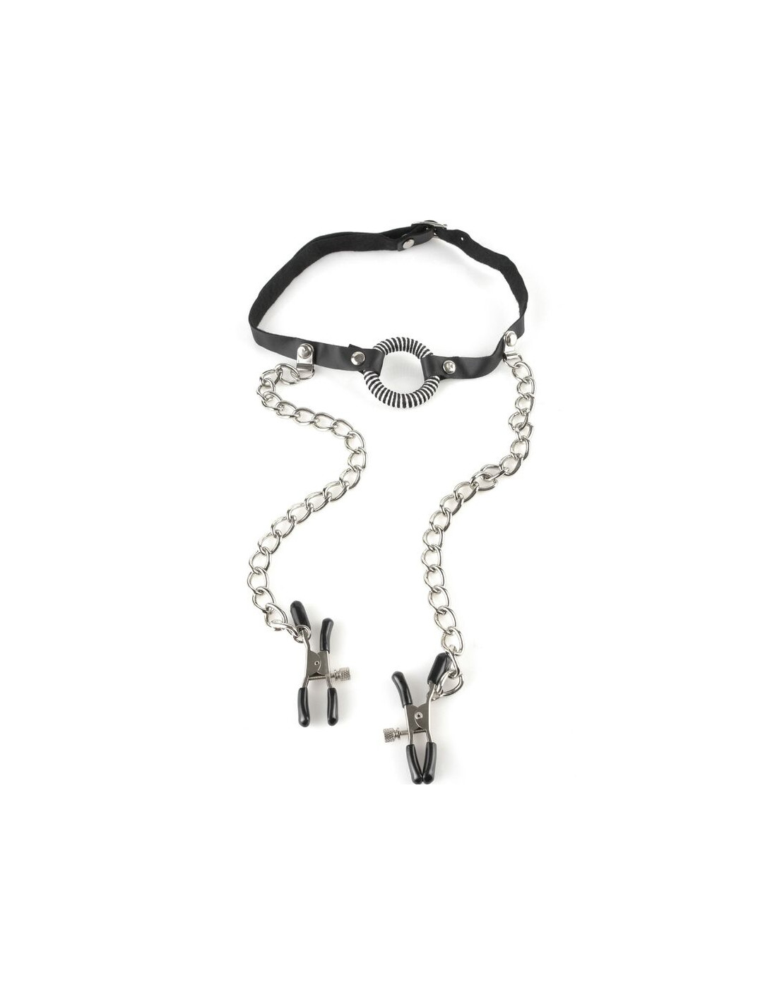 FETISH FANTASY SERIES - MORDAZA CON PINZAS PARA PEZONES