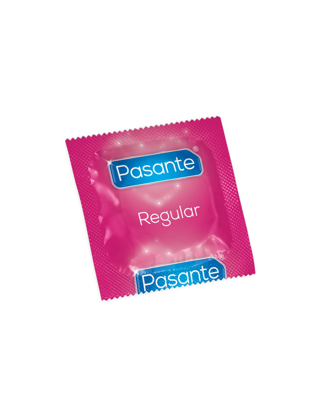 Los condones Pasante Regular tienen una ligera forma cónica para una sensación natural. Suave, de color natural y con punta de tetina.