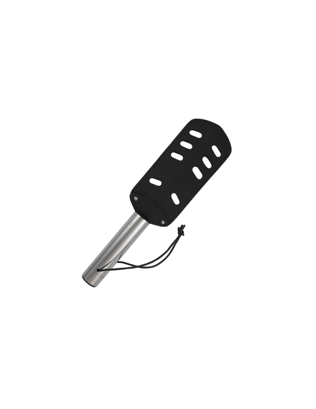 Suave por un lado y metálico en acero inoxidable por el otro, esta es una pala azotadora para un juego de calidad. Hecho de cuero genuino original y acero inoxidable, la pala tiene un núcleo de metal con memoria, por lo que continuamente vuelve a su forma.