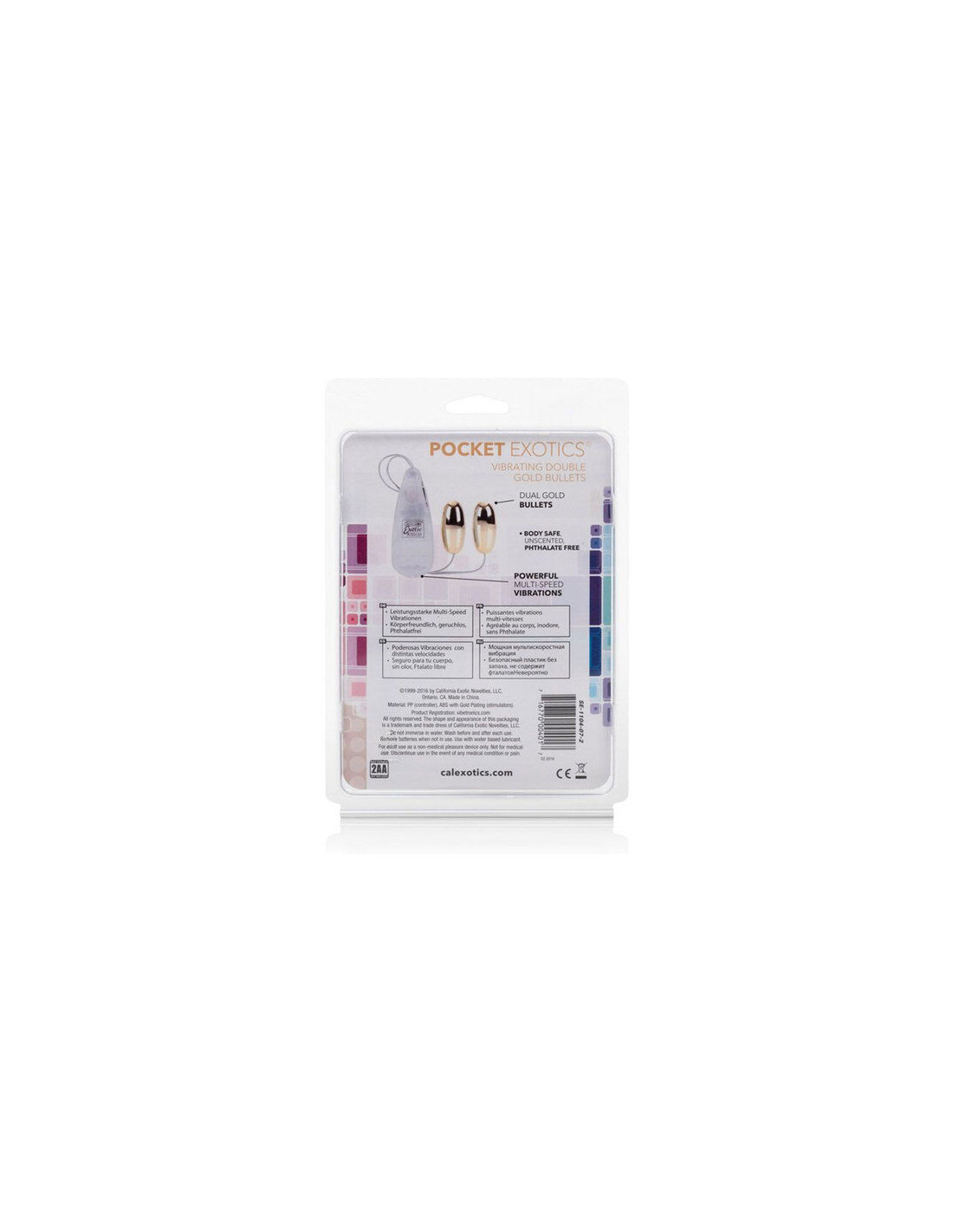 Las balas doradas dobles vibrantes Pocket Exotics están hechas de ABS. Lo que las hace seguras, sensuales y estimulantes.