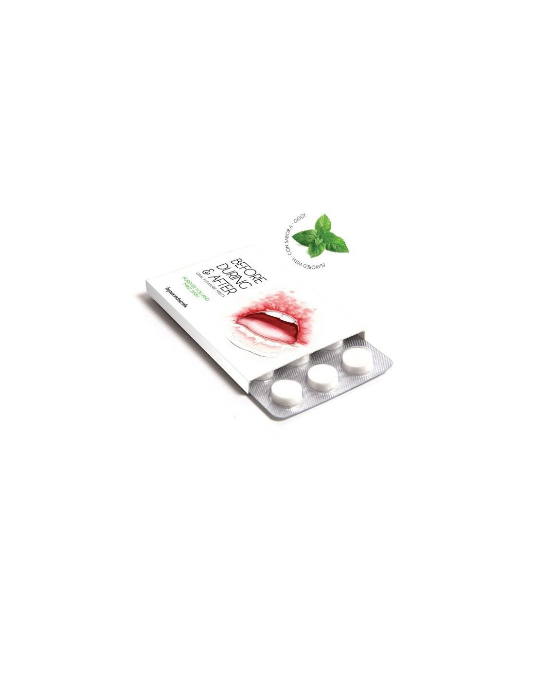 Contenido: caramelos mentolados sabor menta refrescante para sexo oral (grajea con 12 unidades).
