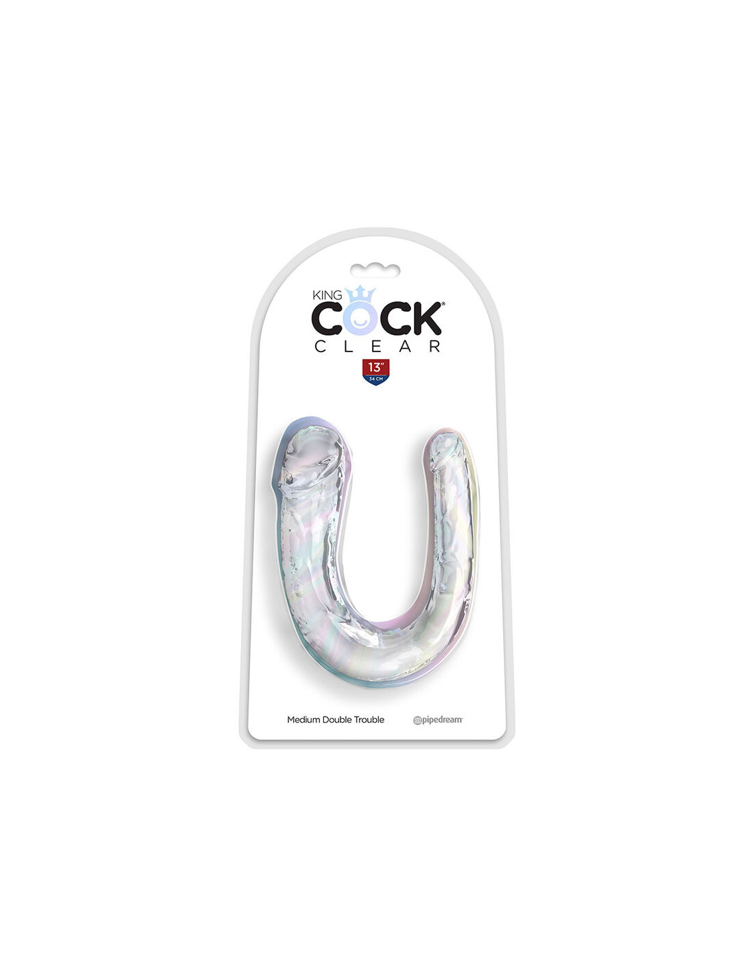Ya sea que prefiera alternar entre los extremos gruesos y delgados o disfrutar de fantasías de doble penetración, el King Cock Clear Double Trouble Dildo es la elección perfecta para usted.