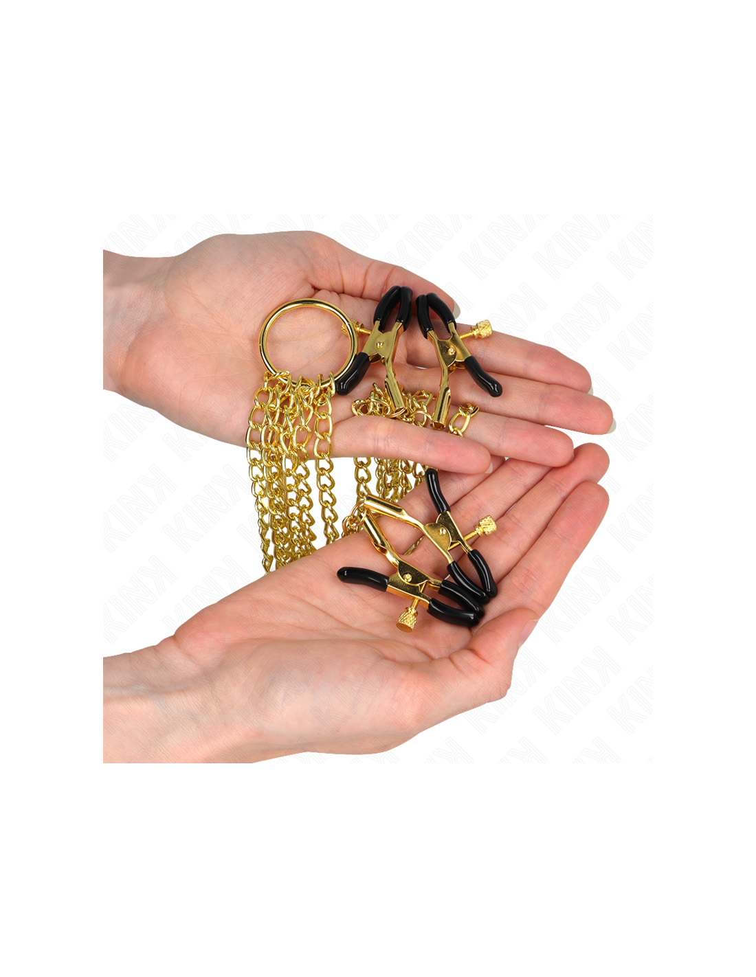 KINK - PINZAS PARA PEZONES Y CLÍTORIS 4 ENGANCHES AJUSTABLE DORADO